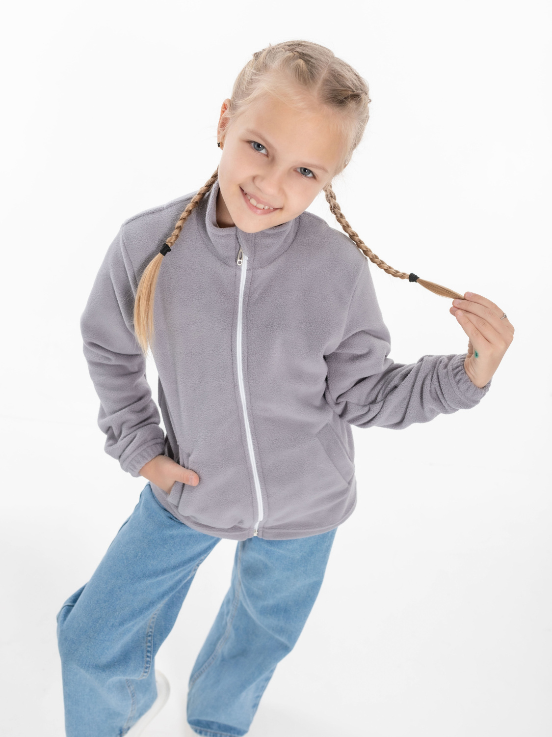 Толстовка из мягкого флиса создана для комфорта и тепла в прохладные дни. Модель выполнена на молнии с защитой подбородка, что делает её удобной в носке. Втачные рукава дополнены манжетами на резинке для лучшей посадки и защиты от ветра. По бокам расположены практичные карманы. Универсальная и лёгкая, эта толстовка станет незаменимой частью детского гардероба для прогулок и активного отдыха.
