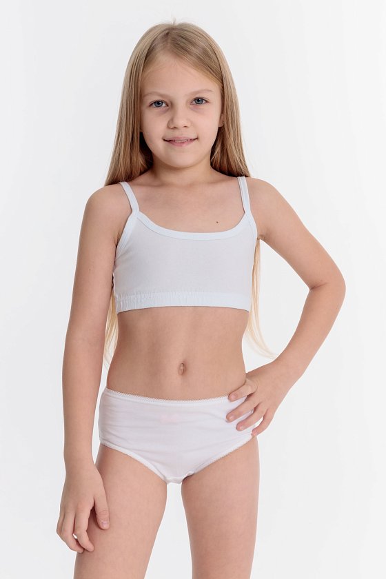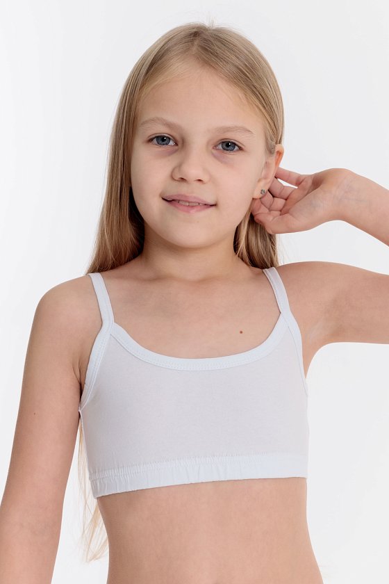 Топ для девочки на тонких бретелях. По низу изделия резинка.