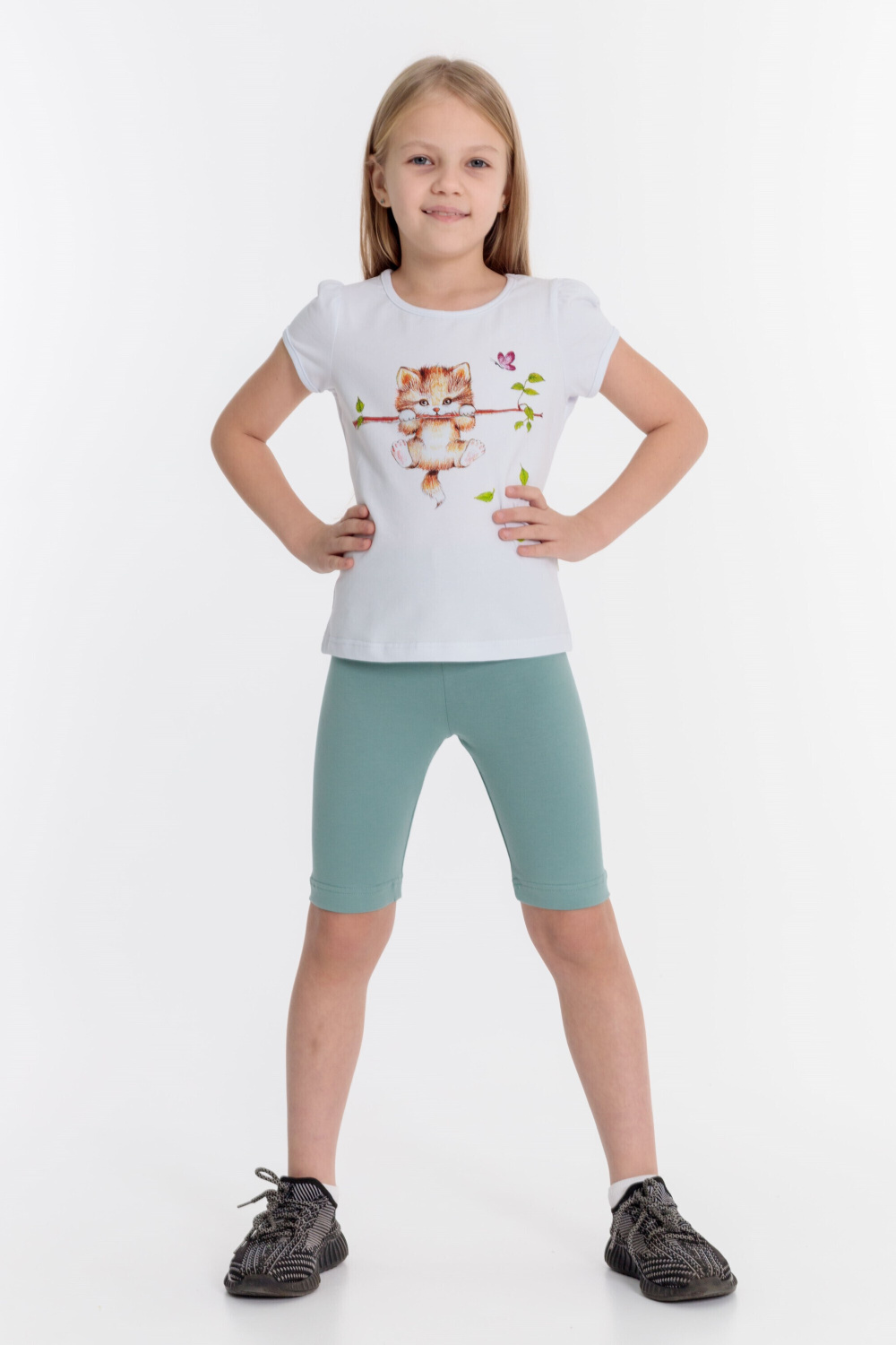 Велосипедки выполнены из однотонной кулирки с лайкрой, пояс на резине.