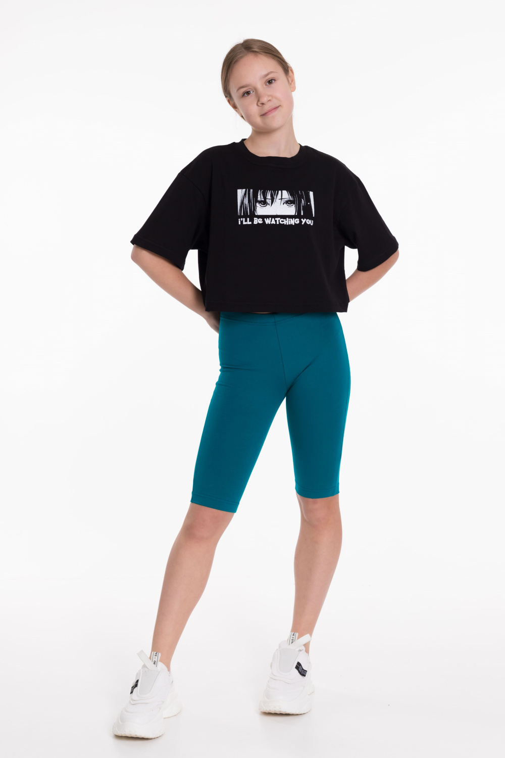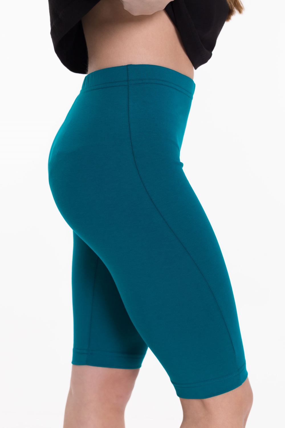 Велосипедки из однотонной кулирки с лайкрой, пояс на резинке.