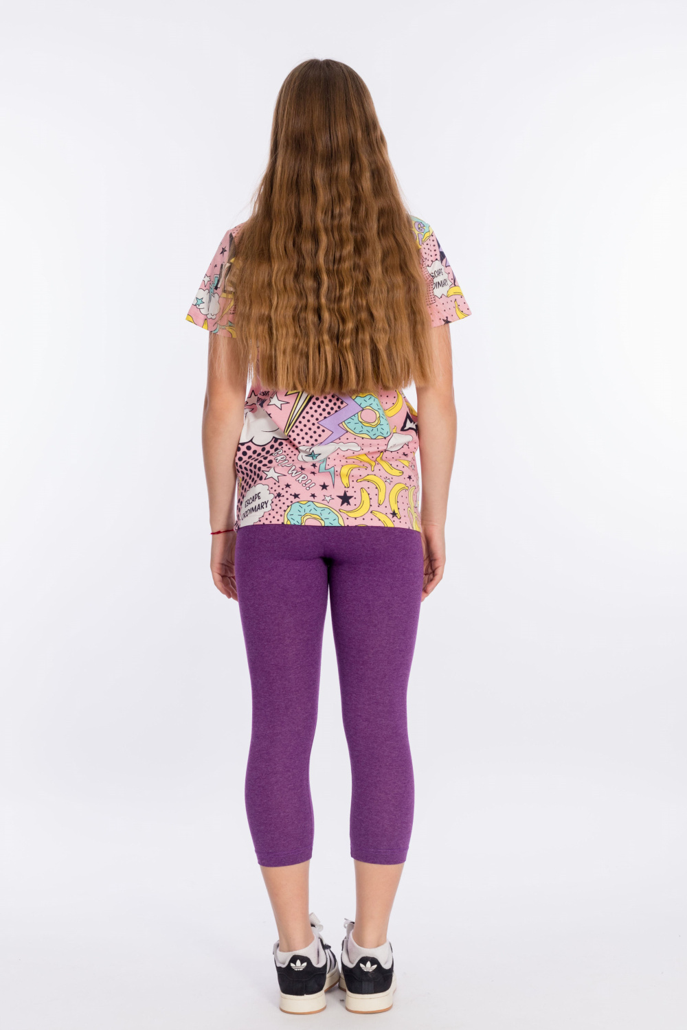 Велосипедки выполнены из хлопкового полотна с добавлением лайкры. Справа расположен принт, пояс на резинке.