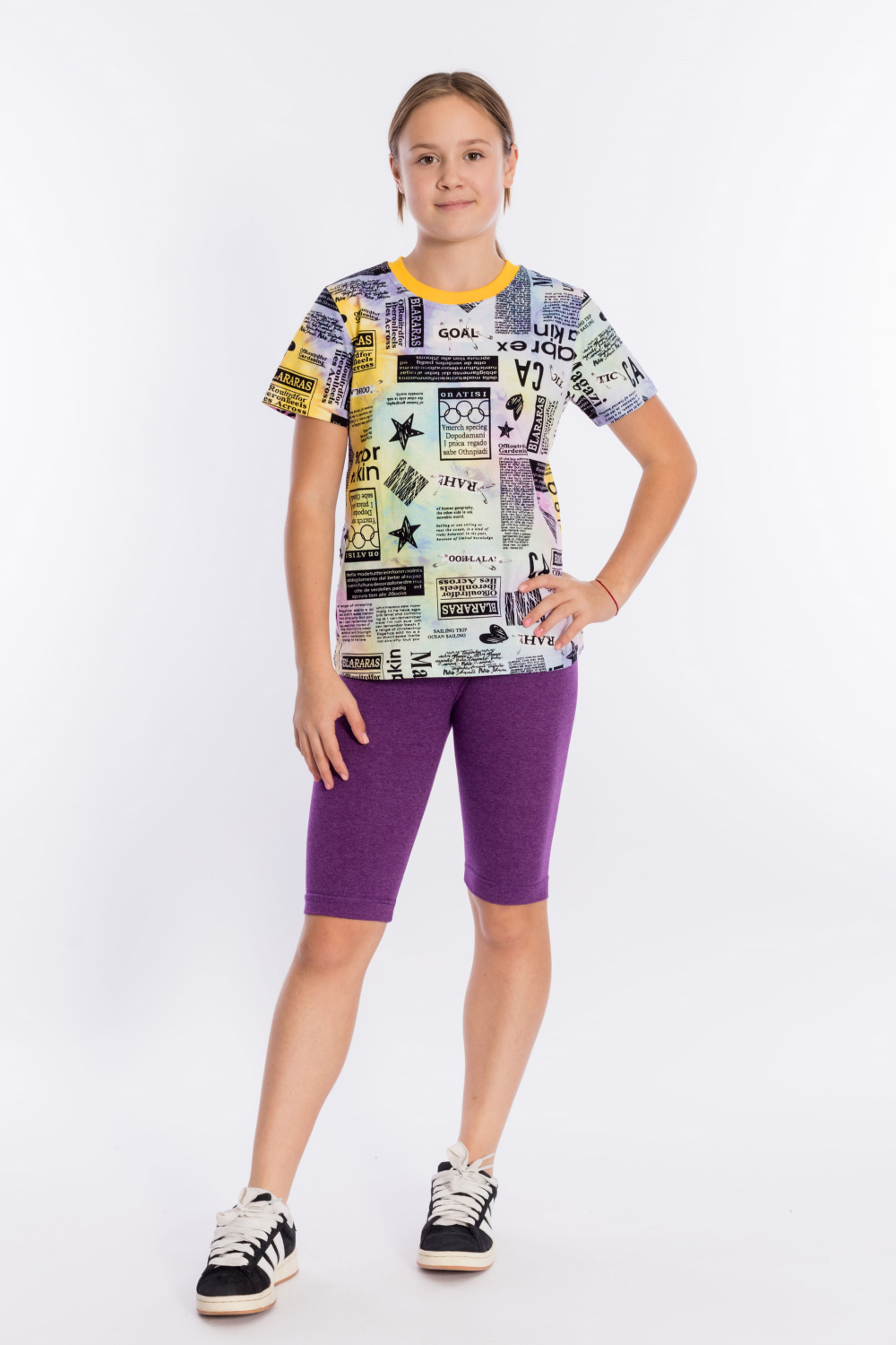 Велосипедки выполнены из однотонной кулирки с лайкрой, пояс на резине.
