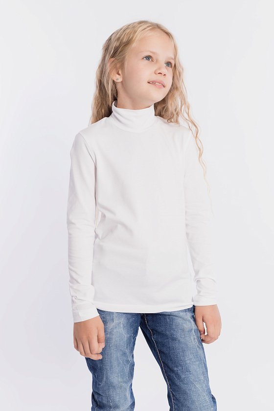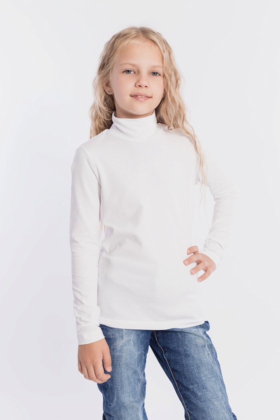 Водолазка с длинным рукавом и воротником-стойкой выполнена из кулирки с лайкрой. Комфортная и незаменимая вещь в базовом гардеробе.