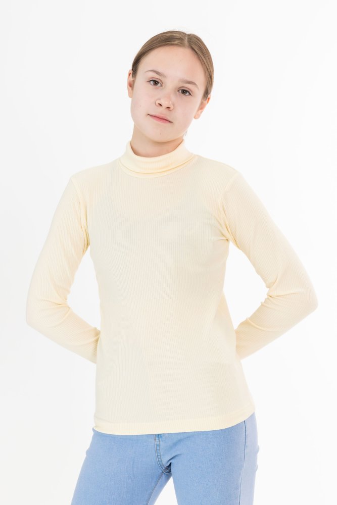 Водолазка с длинным рукавом и воротником-стойкой выполнена из кулирки с лайкрой. Комфортная и незаменимая вещь в базовом гардеробе.