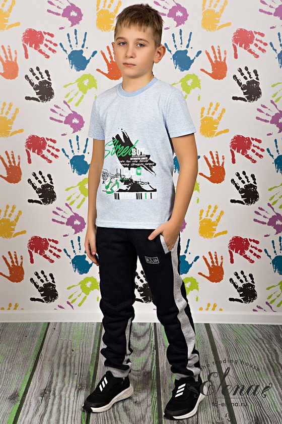 Брюки выполнены из футер петли, с отделочными вставками сбоку и по внутренней стороне. По бокам размещены карманы, пояс на резине, низ на манжетах. С левой стороны вышивка.