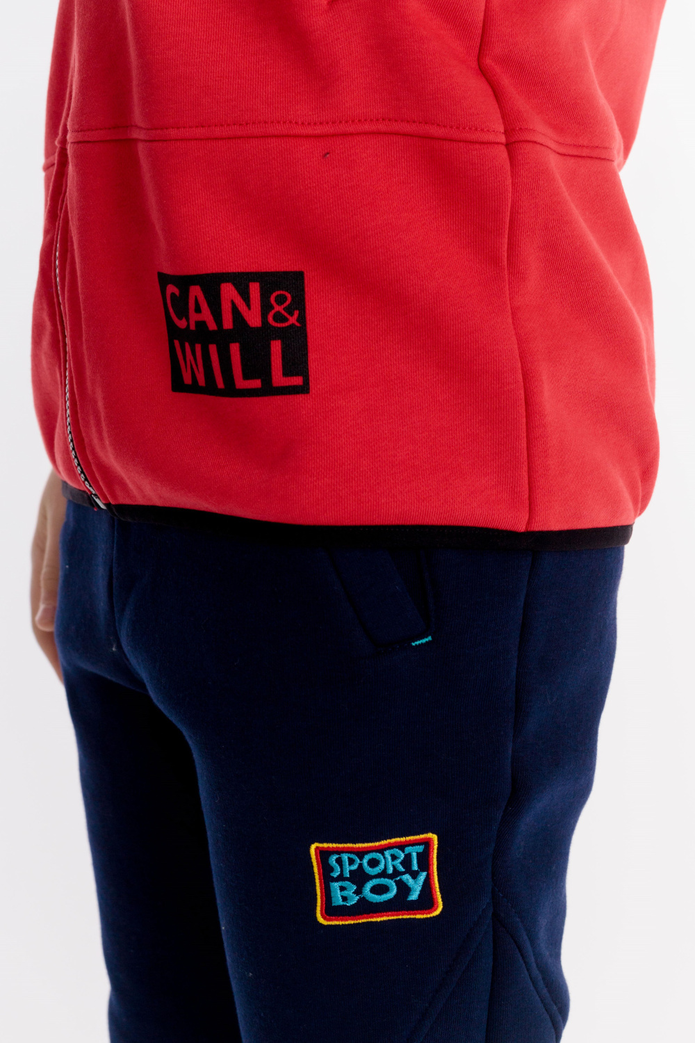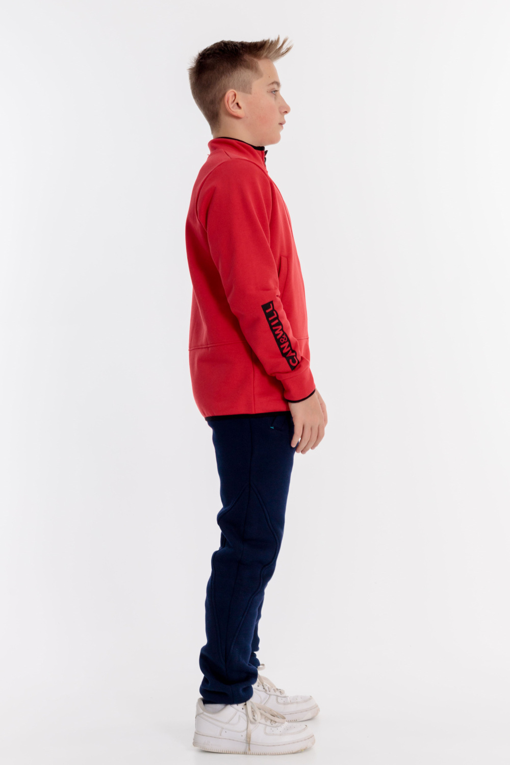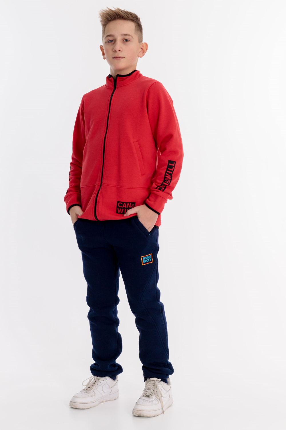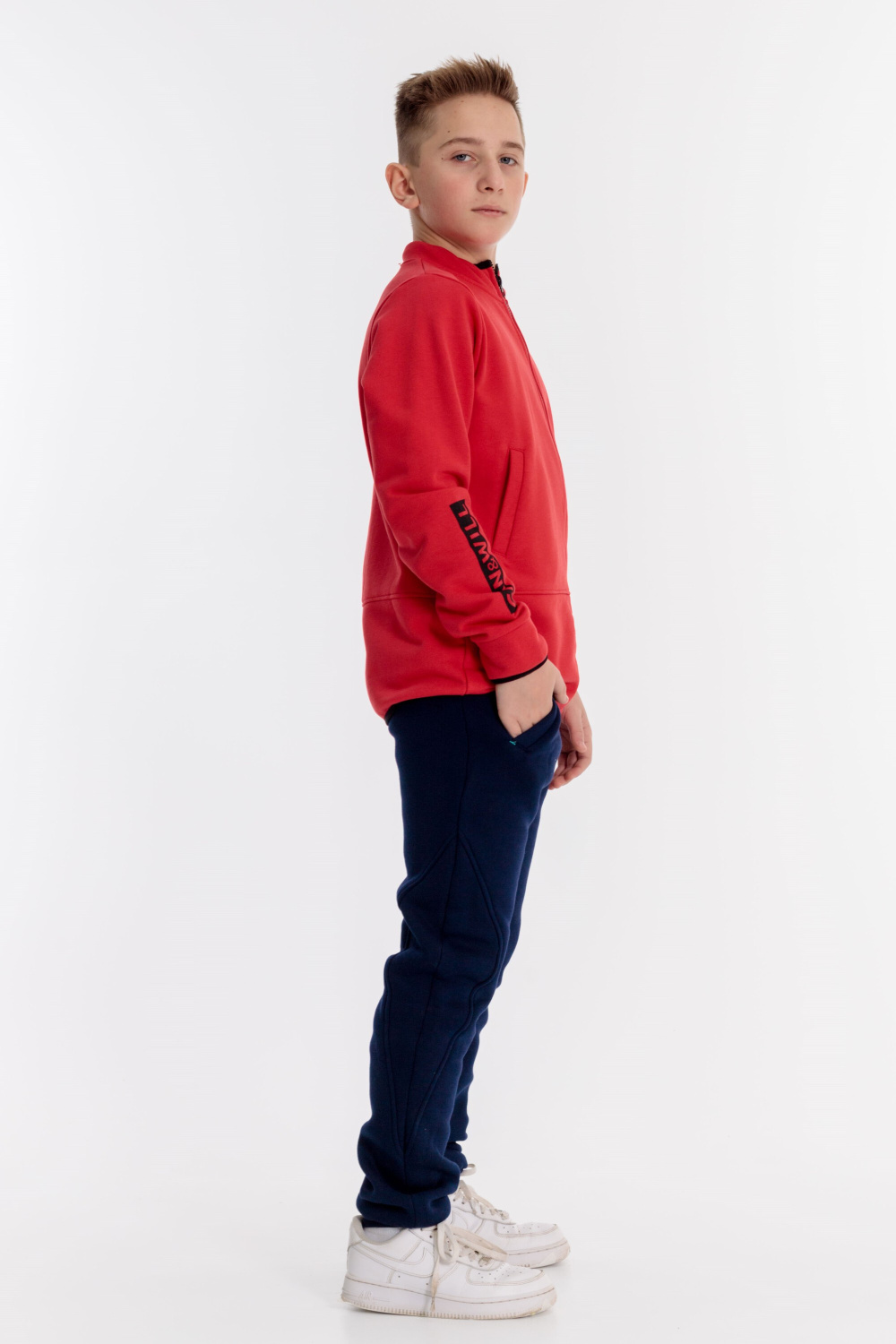 Брюки выполнены из полотна с начёсом. С притачным поясом и манжетами из кашкорсе. Пояс с широкой резиной, через люверсы проложен шнур. Покрой брюк с отделочными уголками, которые образуют ромб по бокам брючин. По бокам размещены наклонные, прорезные карманы, с левой стороны вышивка.