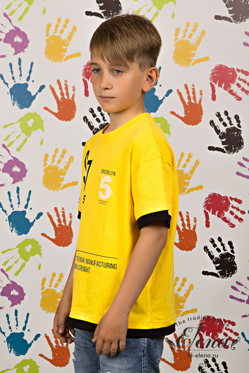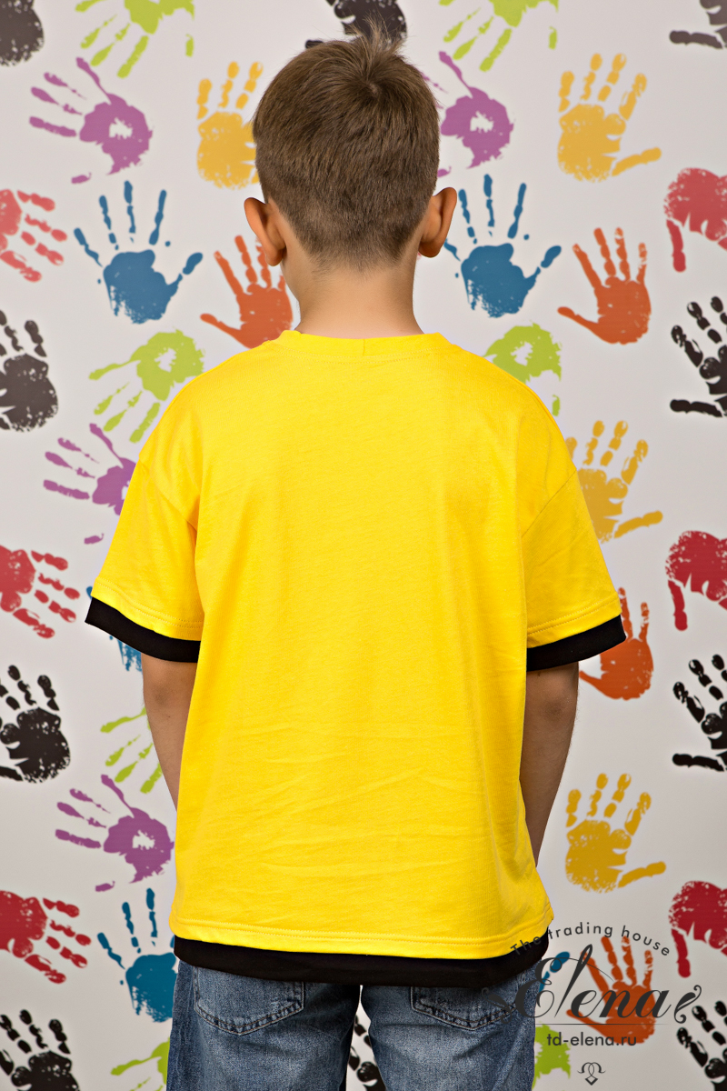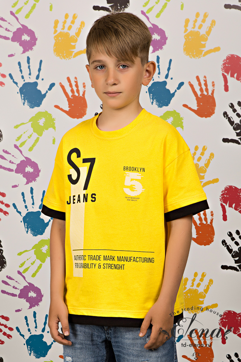 Футболка выполнена из кулирки,100% хлопок с отделкой планками контрастного цвета. Со спущенным рукавом и круглым вырезом горловины. Спереди нанесён принт.