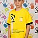 Футболка выполнена из кулирки,100% хлопок с отделкой планками контрастного цвета. Со спущенным рукавом и круглым вырезом горловины. Спереди нанесён принт.