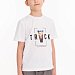 Футболка выполнена из кулирки с лайкрой. С коротким рукавом и круглым вырезом горловины. Спереди нанесён оригинальный принт.