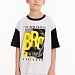 Футболка выполнена из кулирки. Свободный покрой, с коротким спущенным рукавом. Круглая горловина оформлена притачной планкой. Спереди нанесён принт.