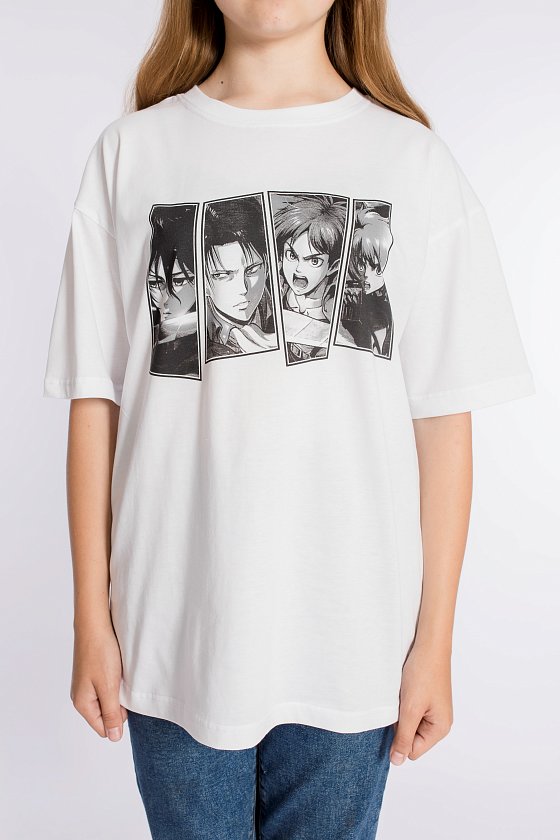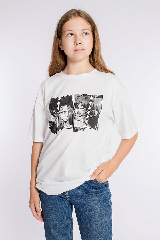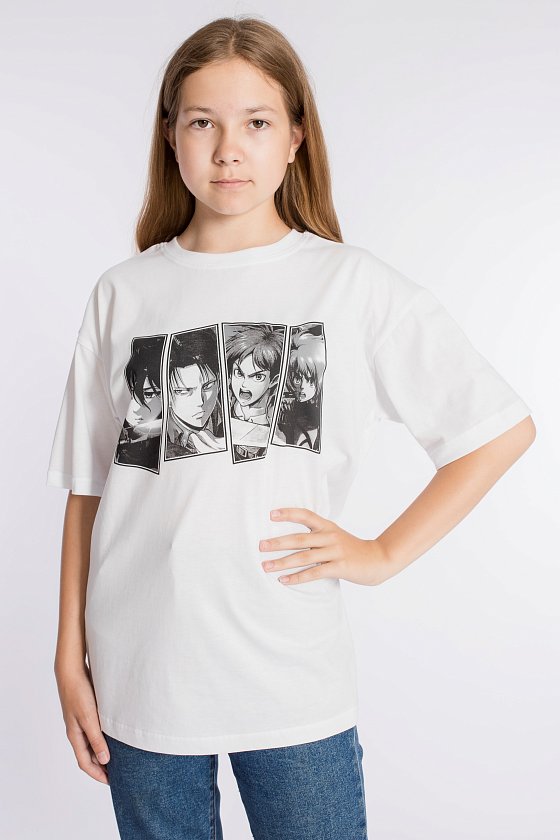 Футболка оверсайз из однотонной кулирки, 100% хлопок. С коротким рукавом и круглым вырезом горловины, оформленным планкой. Спереди нанесён оригинальный принт.