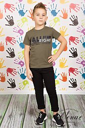 Футболка выполнена из хлопкового полотна, с коротким рукавом и круглым вырезом горловины. Спереди нанесён принт.