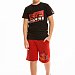 Футболка выполнена из хлопкового полотна с добавлением лайкры. Футболка однотонная, вырез горловины круглый, с коротким рукавом и принтом спереди.