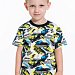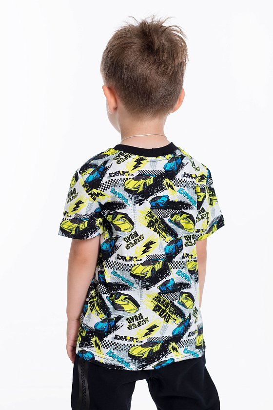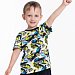 Футболка выполнена из хлопкового полотна c набивным рисунком, с коротким рукавом и круглым вырезом горловины.