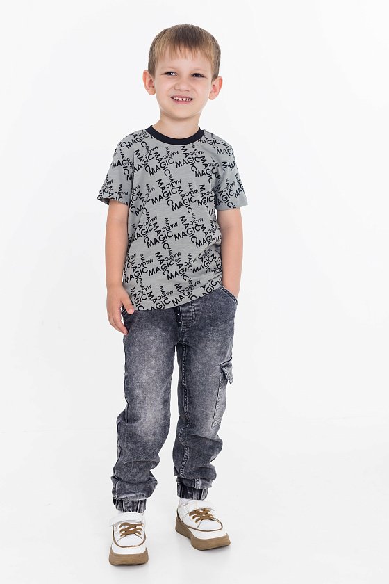 Футболка для мальчика из кулирки. Круглый вырез горловины, втачной рукав.