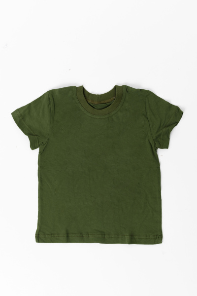 Футболка выполнена из хлопкового полотна, с коротким рукавом и круглым вырезом горловины.