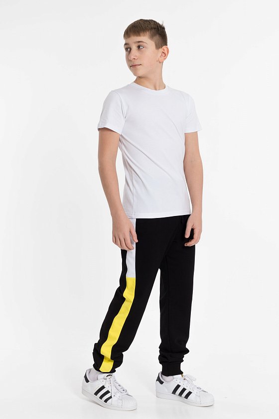Футболка выполнена из однотонной кулирки с лайкрой. С коротким рукавом и круглым вырезом горловины.