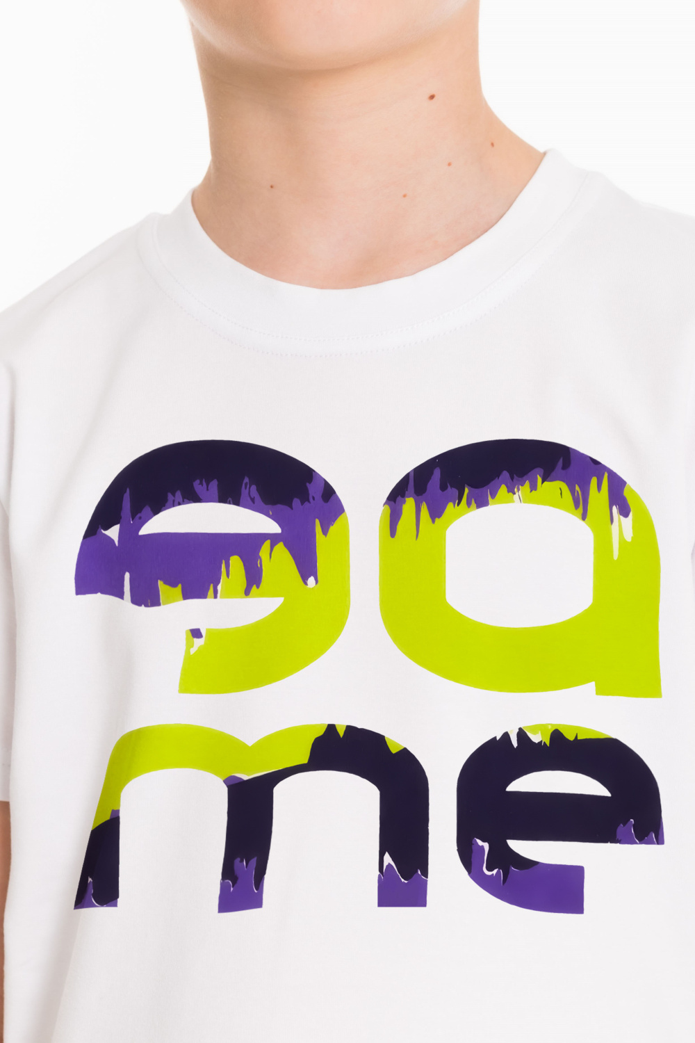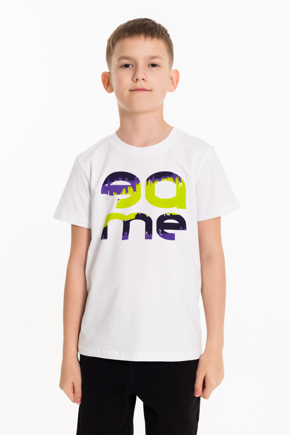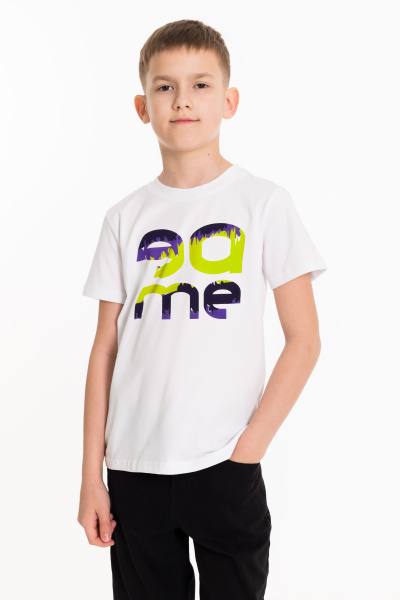 Футболка из кулирки с лайкрой. С коротким рукавом и круглым вырезом горловины. Спереди нанесён принт.