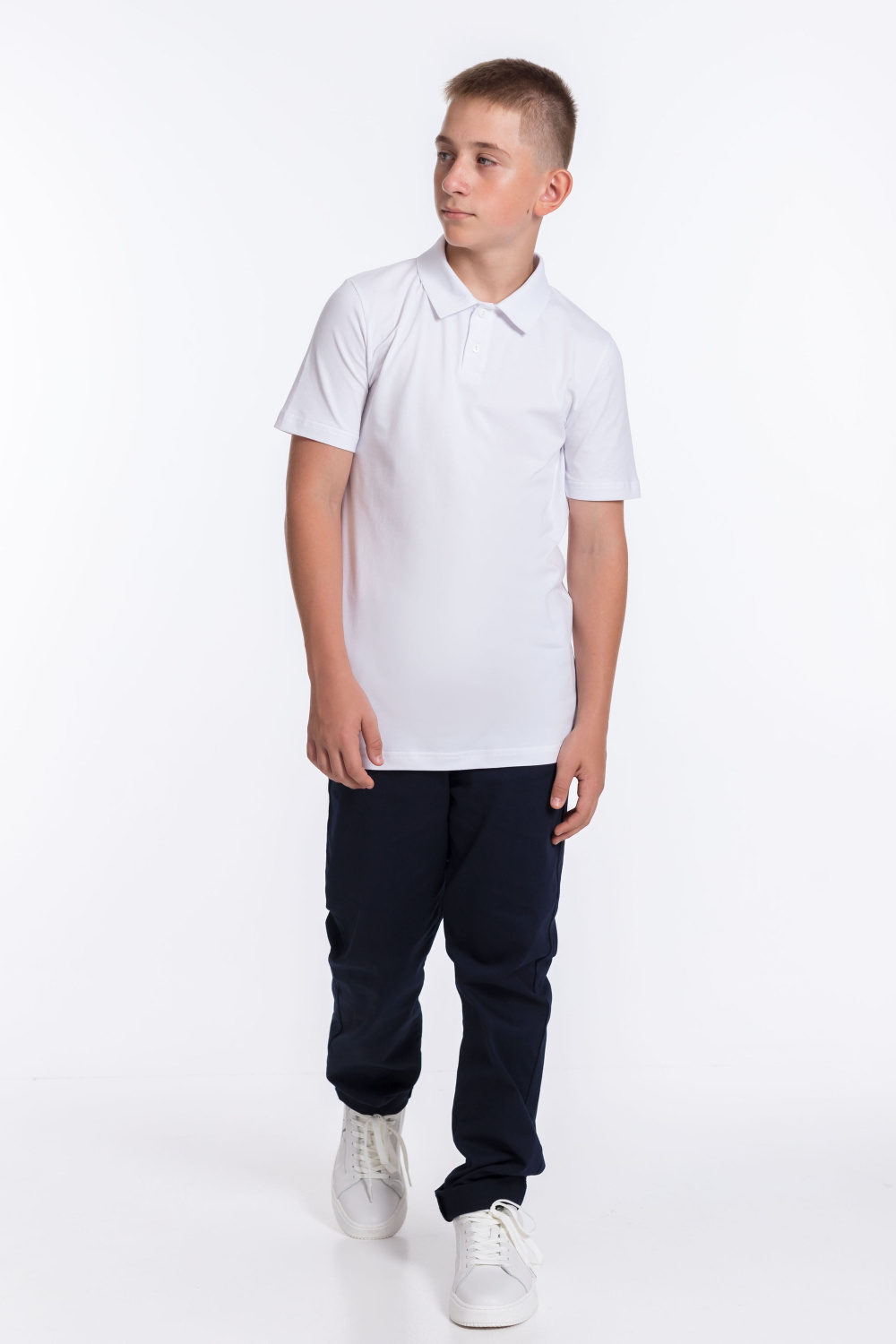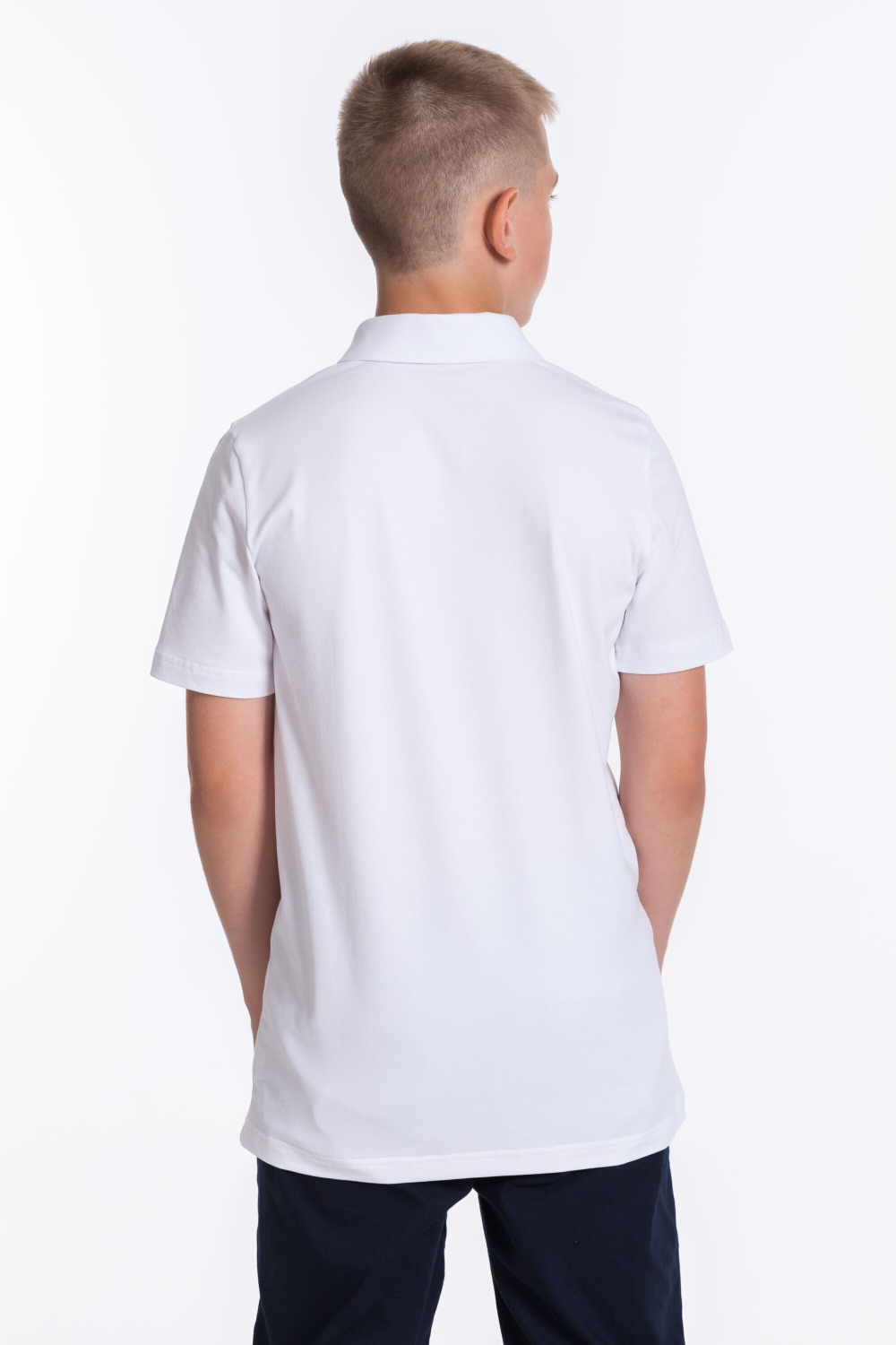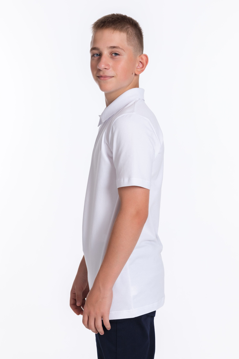 Отличный выбор для школьника — белая футболка-поло с коротким рукавом из материала кулирка с лайкрой и застёжкой на две пуговицы. Воротник придаёт изделию аккуратный вид, а качественный материал обеспечивает комфорт при носке.