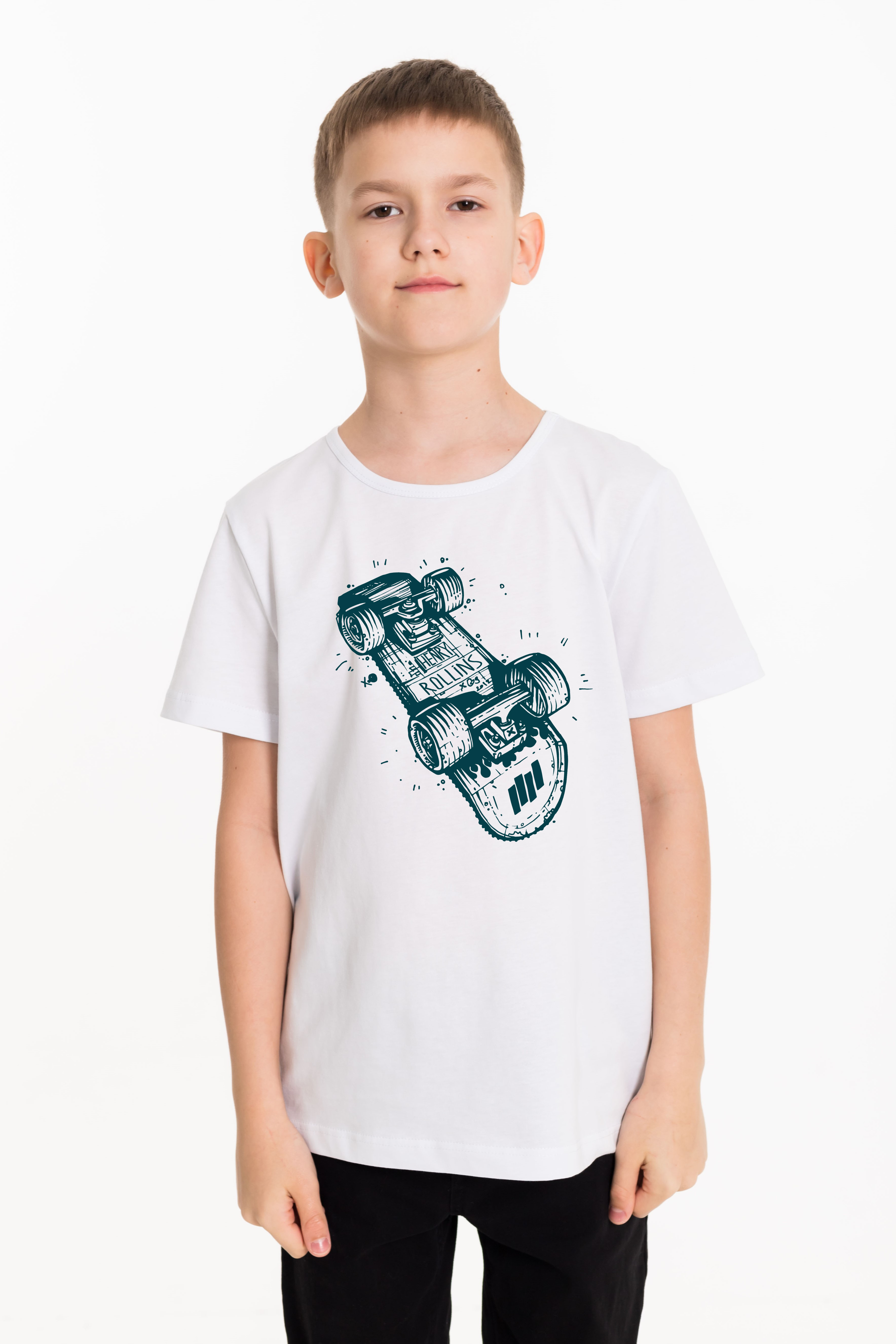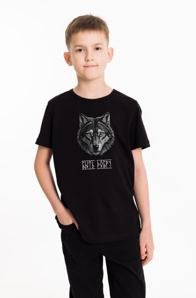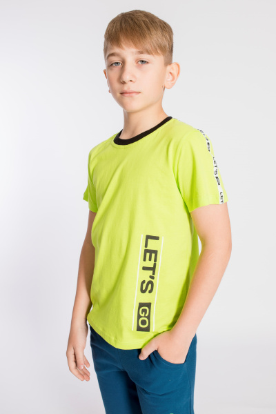 Футболка детская из кулирки, круглый вырез горловины,на полочке принт.