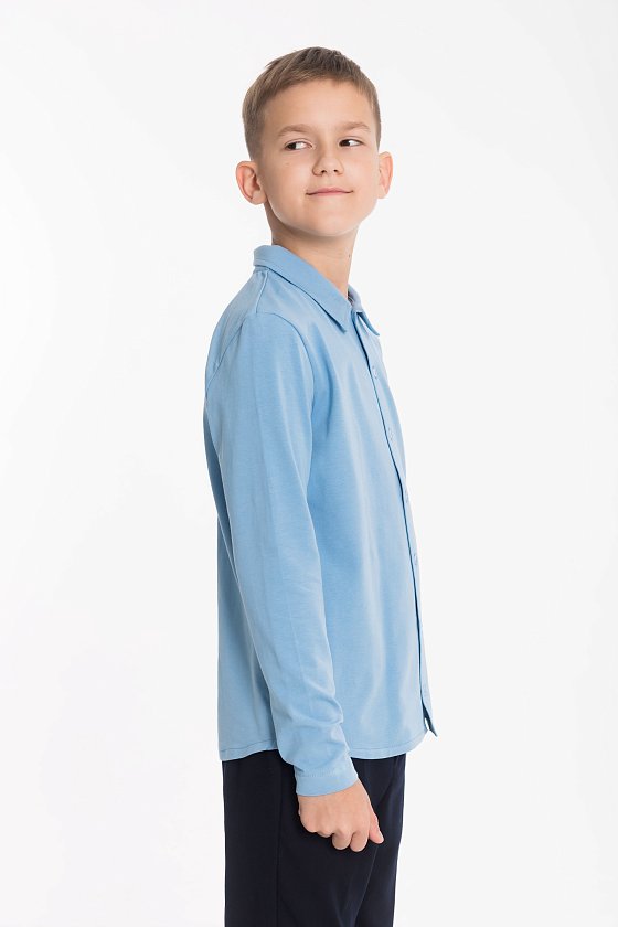 Рубашка с длинным рукавом из материала кулирка с лайкрой и застёжкой на пуговицы — отличный выбор для школьника. Обеспечивает свободу движений, комфорт и аккуратный внешний вид. Воротник придаёт изделию стильный вид.