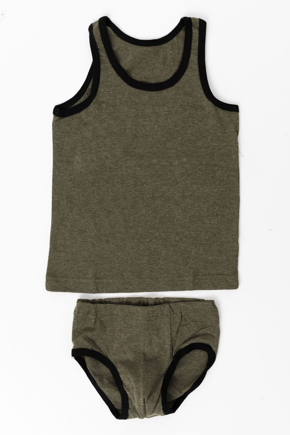 Комплект нижнего белья для мальчика выполнен из кулирки, 100% хлопок. Майка с широкими бретелями имеет свободный комфортный крой. Плавки с высокой посадкой и резиной по талии. По горловине, проймам и «ножкам» комплекта обработка бейкой.