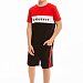Костюм для мальчика выполнен из мягкой и приятной к телу ткани — кулирки (100% хлопок), комбинирован из трёх цветов. Он состоит из свободных шорт и футболки, что обеспечивает комфорт и свободу движений.