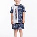 Костюм для мальчика выполнен из хлопкового полотна, состоит из футболки и шорт. Футболка с коротким рукавом и круглым вырезом горловины. Шорты средней длины, свободного кроя с поясом на резинке и шнуре. На правой полочке футболки принт.