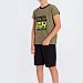 Костюм выполнен из кулирки, 100% хлопок. Футболка с принтом спереди, рукав короткий. Шорты с поясом на резинке.