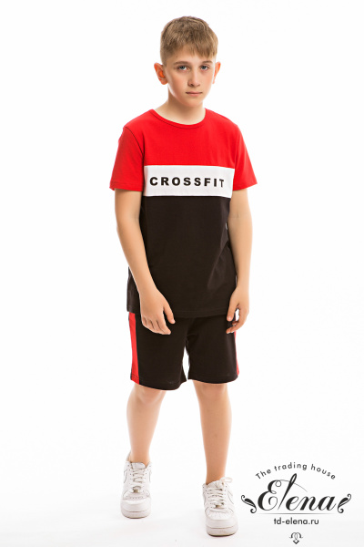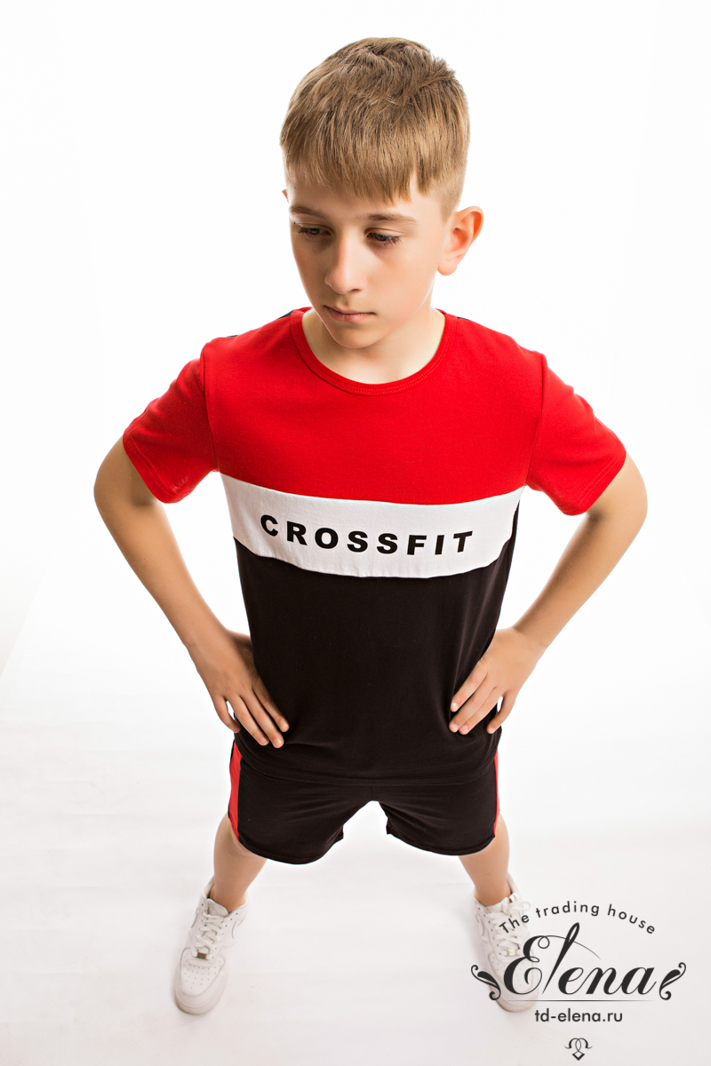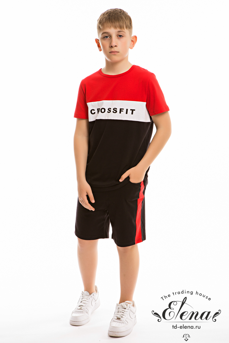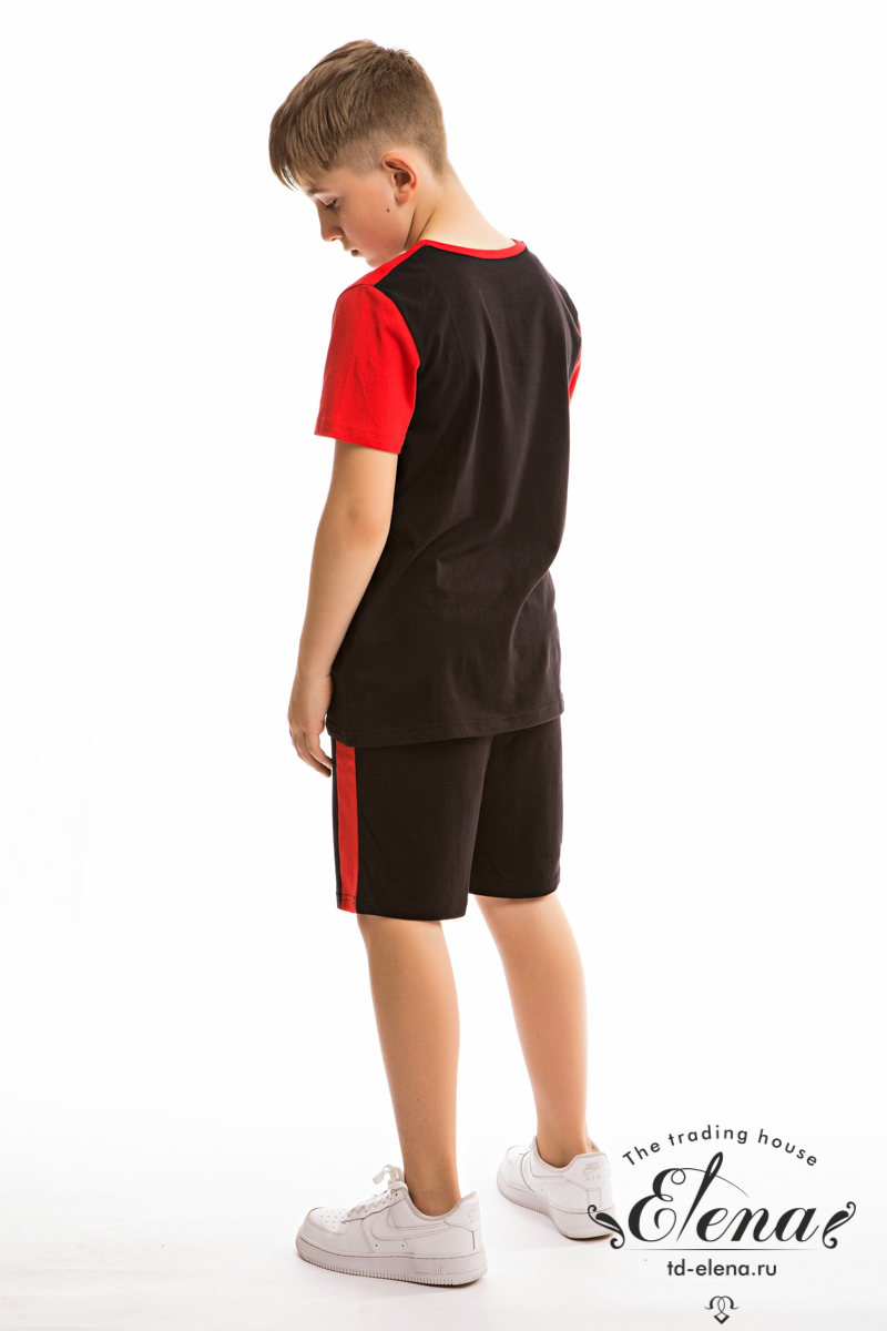 Костюм для мальчика выполнен из мягкой и приятной к телу ткани — кулирки (100% хлопок), комбинирован из трёх цветов. Он состоит из свободных шорт и футболки, что обеспечивает комфорт и свободу движений.
