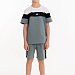 Костюм для мальчика выполнен из кулирки, состоит из футболки и шорт. Футболка с круглым вырезом горловины и принтом спереди. Шорты с поясом на резинке.