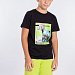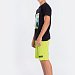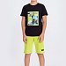 Костюм для мальчика выполнен из хлопкового полотна, состоит из футболки и шорт. Футболка с коротким рукавом и круглым вырезом горловины. Шорты средней длины, свободного покроя с поясом на резинке. На футболке и шортах спереди нанесён принт.