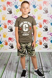Костюм выполнен из футер петли с лайкрой. Толстовка с капюшоном и застёжкой на молнии, ширина капюшона регулируется при помощи шнура. На толстовке по бокам размещены карманы, пояс и манжеты на рукавах и брюках из кашкорсе. На толстовке и брюках нанесён принт.