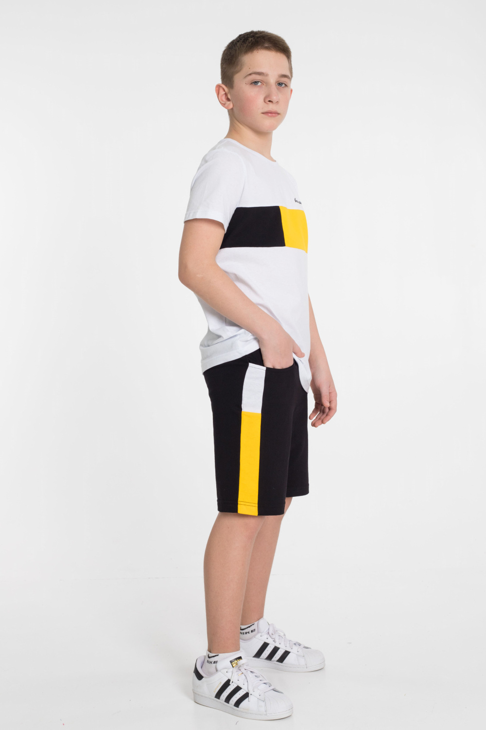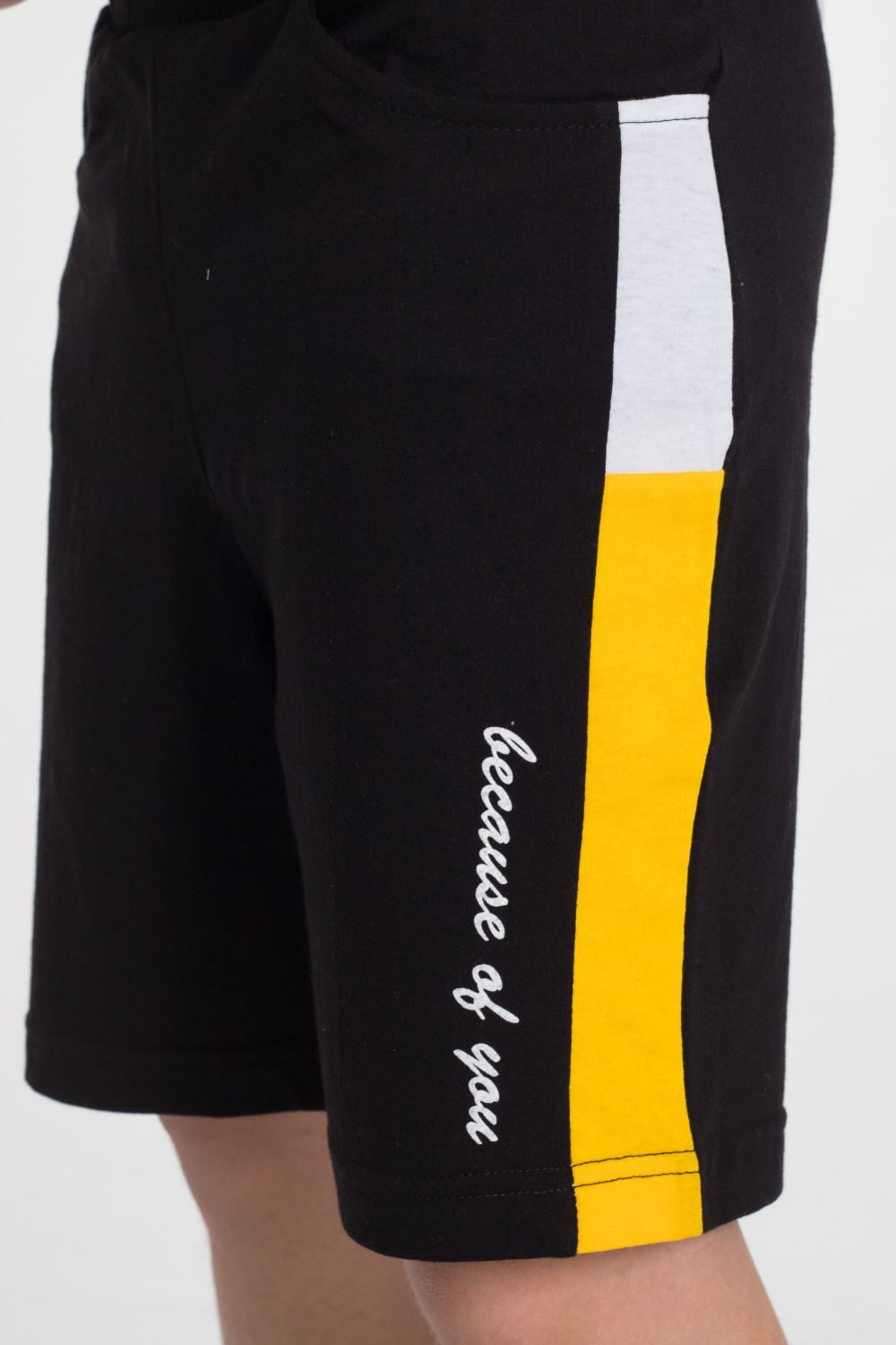 Шорты с боковыми карманами и отделочной боковой полосой 2-х цветов.