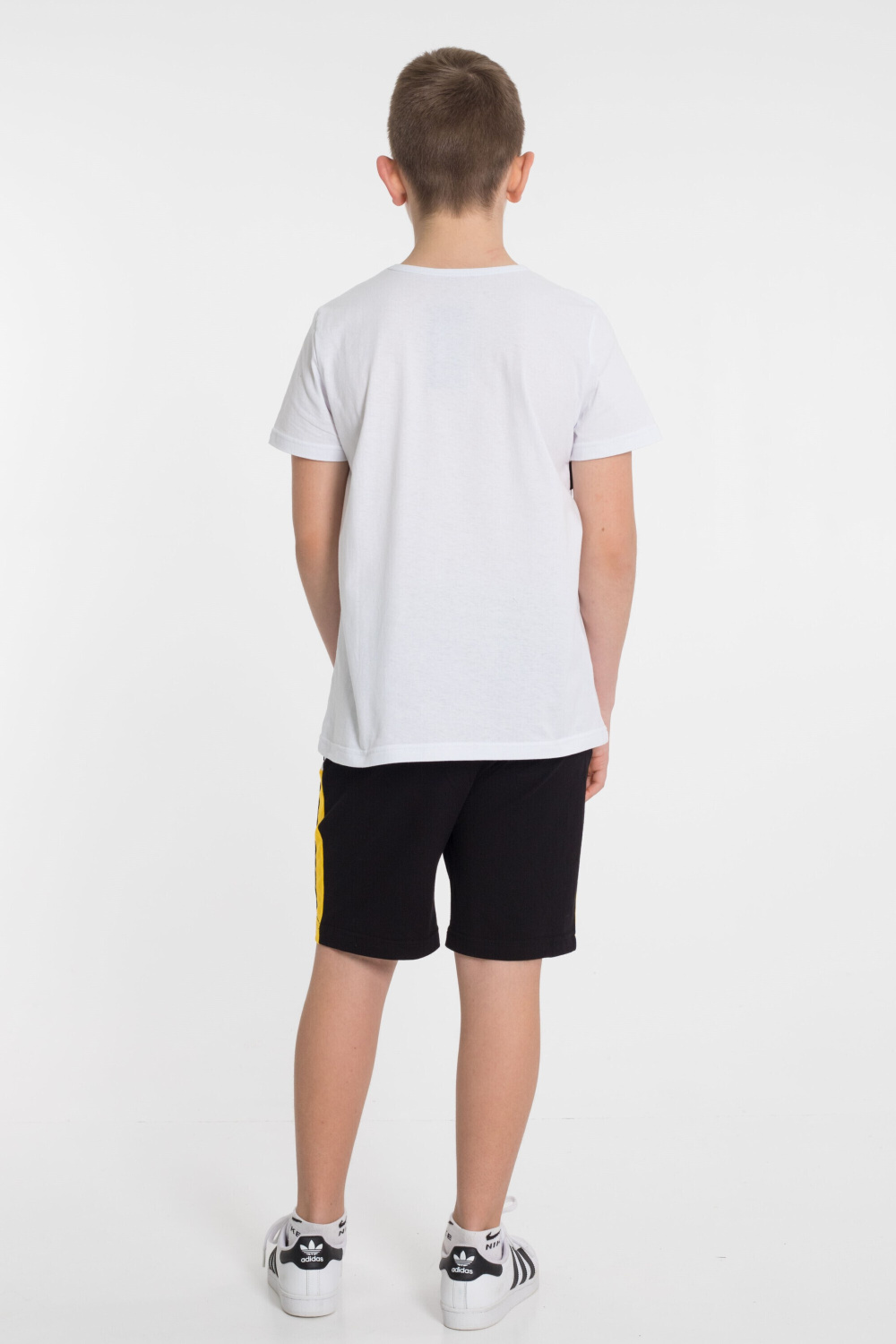 На кокетке футболки и правой передней половинке шорт принт.