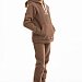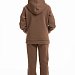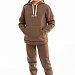 Костюм выполнен из футера с начёсом (трёхнитка), состоит из толстовки и брюк. Толстовка с капюшоном, карманом-кенгуру и принтом спереди. Пояс толстовки, низ рукавов и низ брюк оформлены манжетами из основного полотна. Пояс брюк на резине и шнуре.