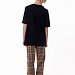 Пижама выполнена из натурального хлопкового полотна, обеспечивающего комфорт и приятные ощущения во время сна и отдыха. Комплект состоит из удобных брюк в клетку с эластичным поясом и однотонной футболки с коротким рукавом. Круглый вырез горловины аккуратно оформлен бейкой, а спереди расположен принт, придающий модели аккуратный и уютный акцент. Пижама отлично подойдёт для комфортного домашнего отдыха и спокойного сна.