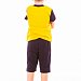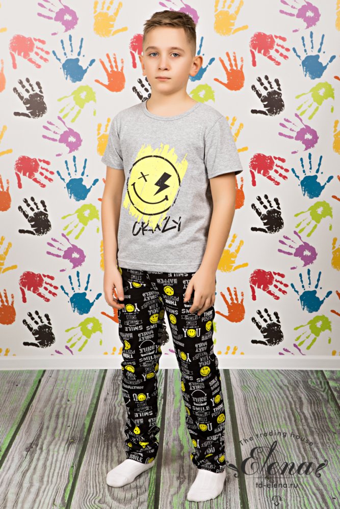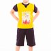 Пижама для мальчиков пошита из хлопковой ткани двух цветов с принтом и вставкой на горловине на футболке, фулболка с коротким рукавом, капри на резинке.