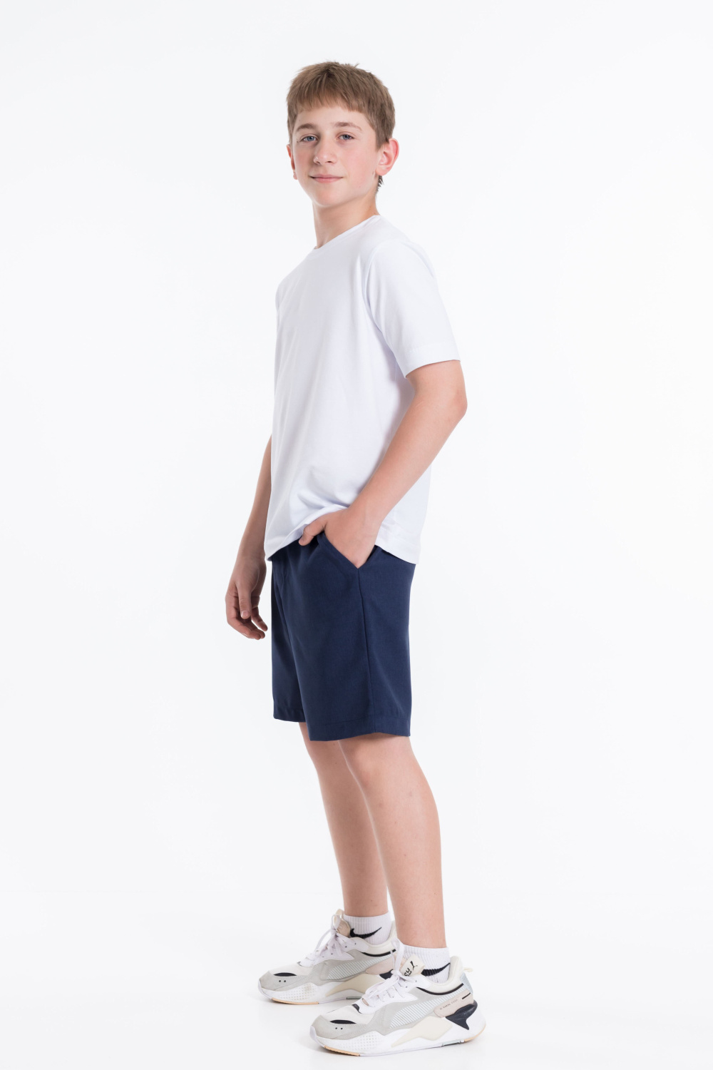 Шорты для мальчиков из полотна "искусственнй лен". Пояс на резинке, боковые карманы.