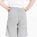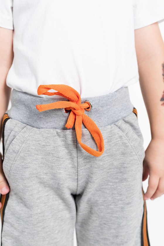 Шорты для мальчика из футер петли. В шортах есть карманы по бокам, а также сзади расположены два накладных кармана. Пояс из кашкорсе с люверсами и ярким отделочным шнуром. Вдоль бокового шва настрочены яркие полосы из декоративной резины. Низ шорт не обработан.