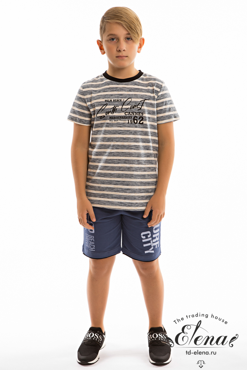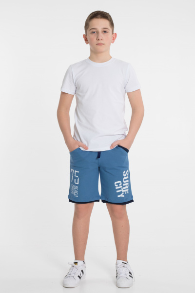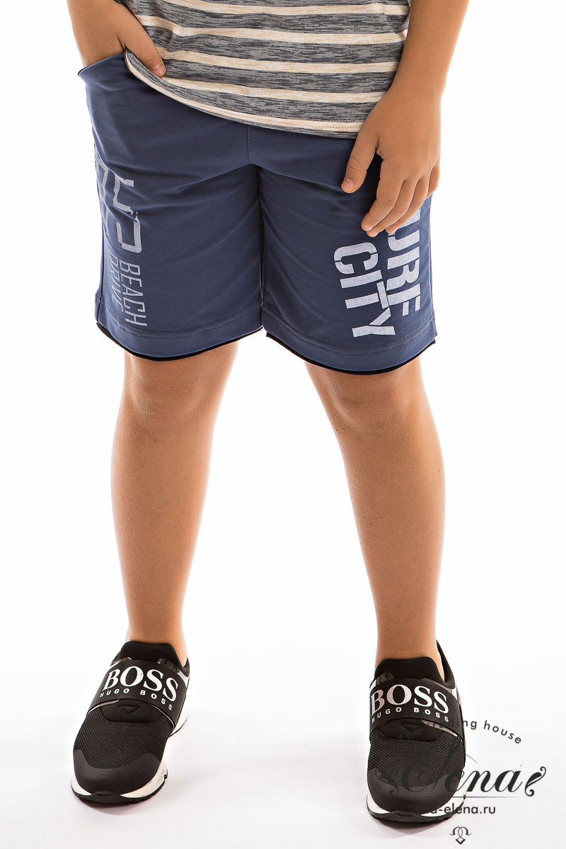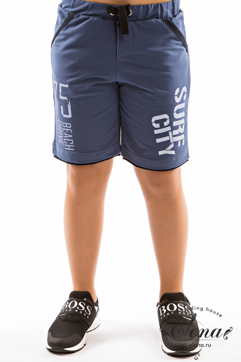 Шорты детские выполнены из футер петли. Пояс на резинке, через люверсы продёрнут шнур. По бокам расположены карманы. Спереди нанесён принт.