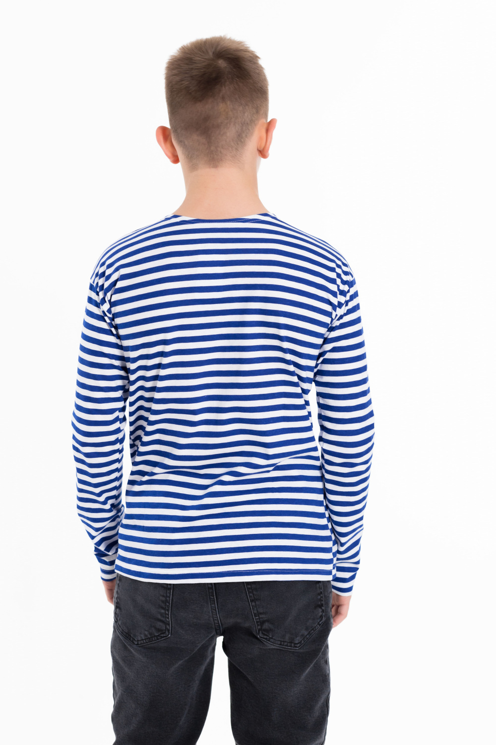 Тельняшка детская с длинным рукавом выполнена х/б полотна.
