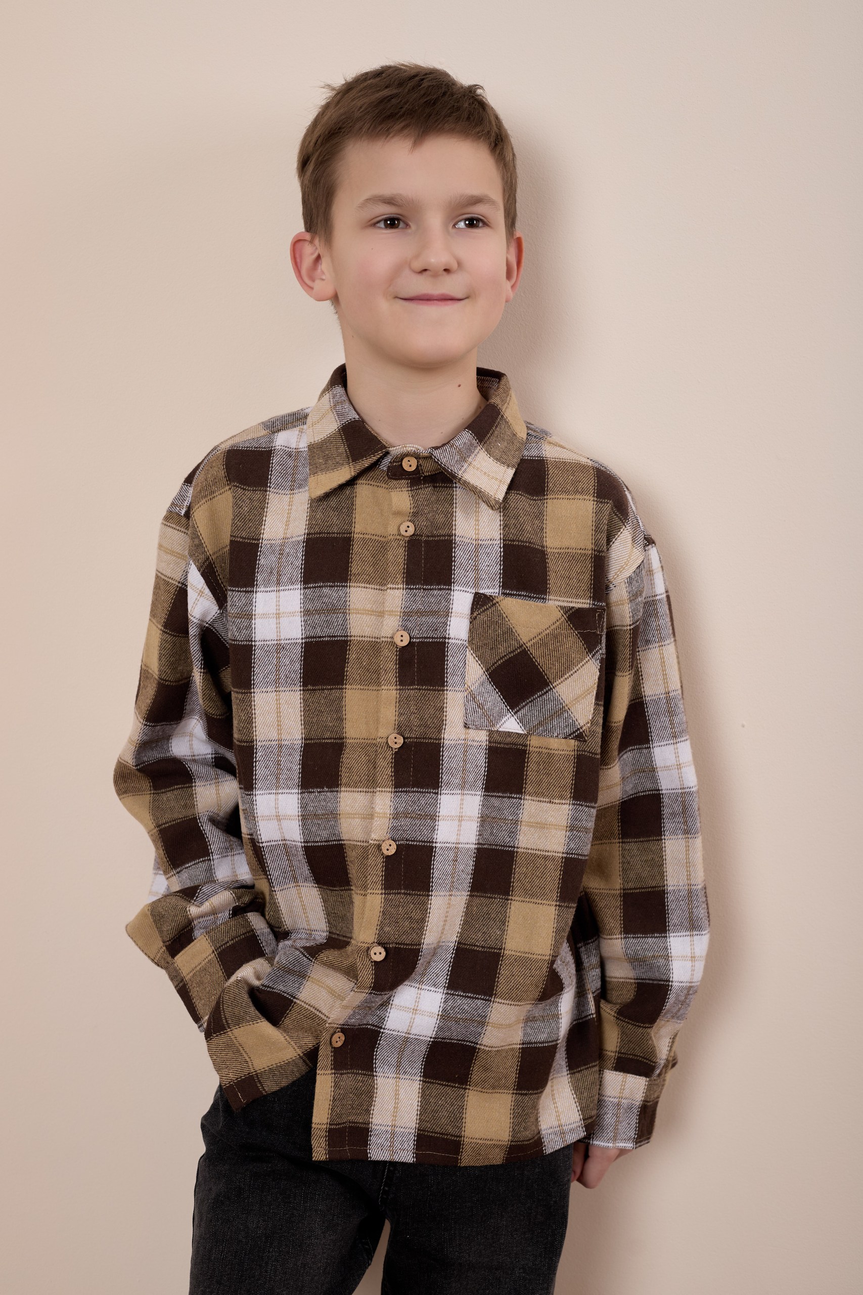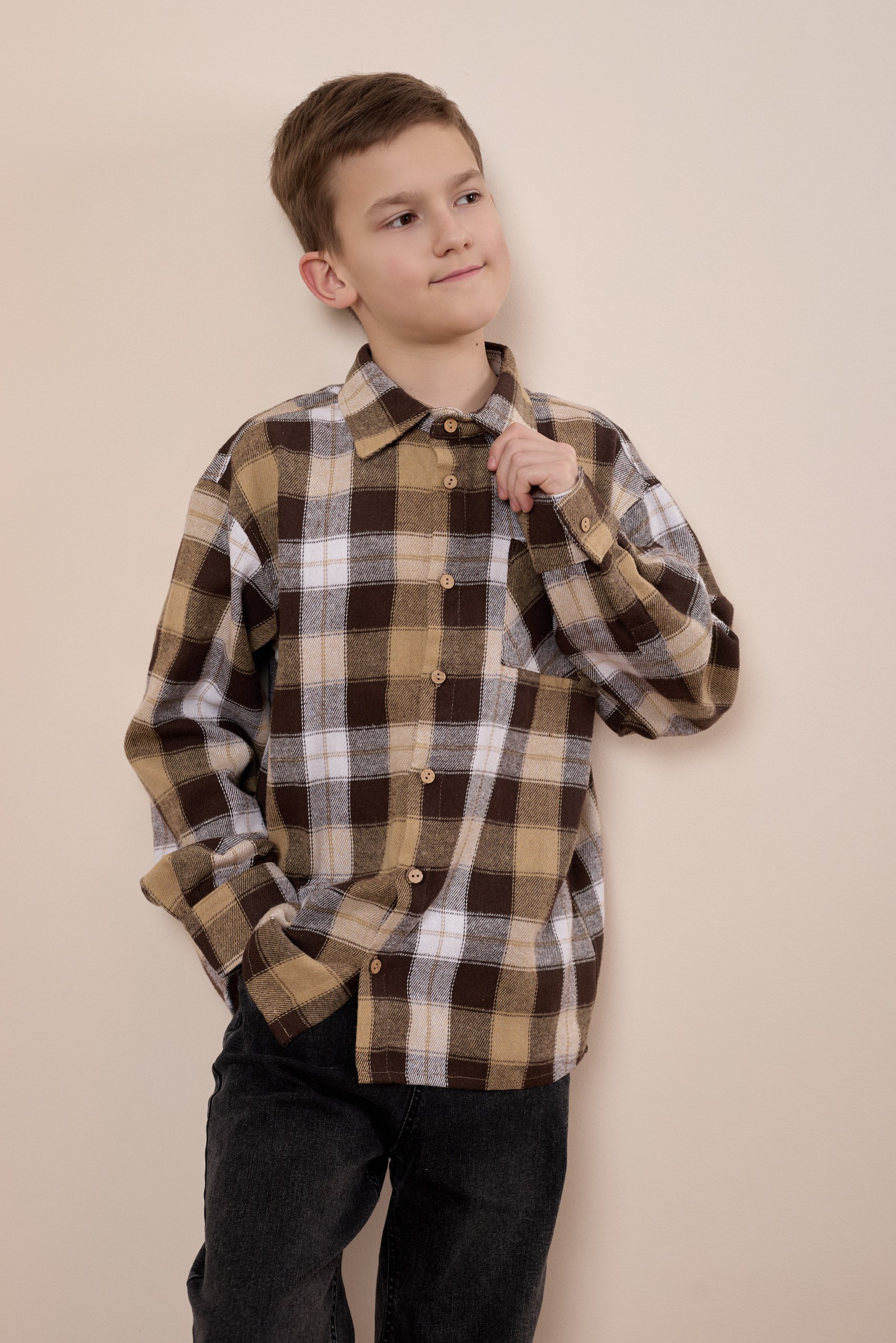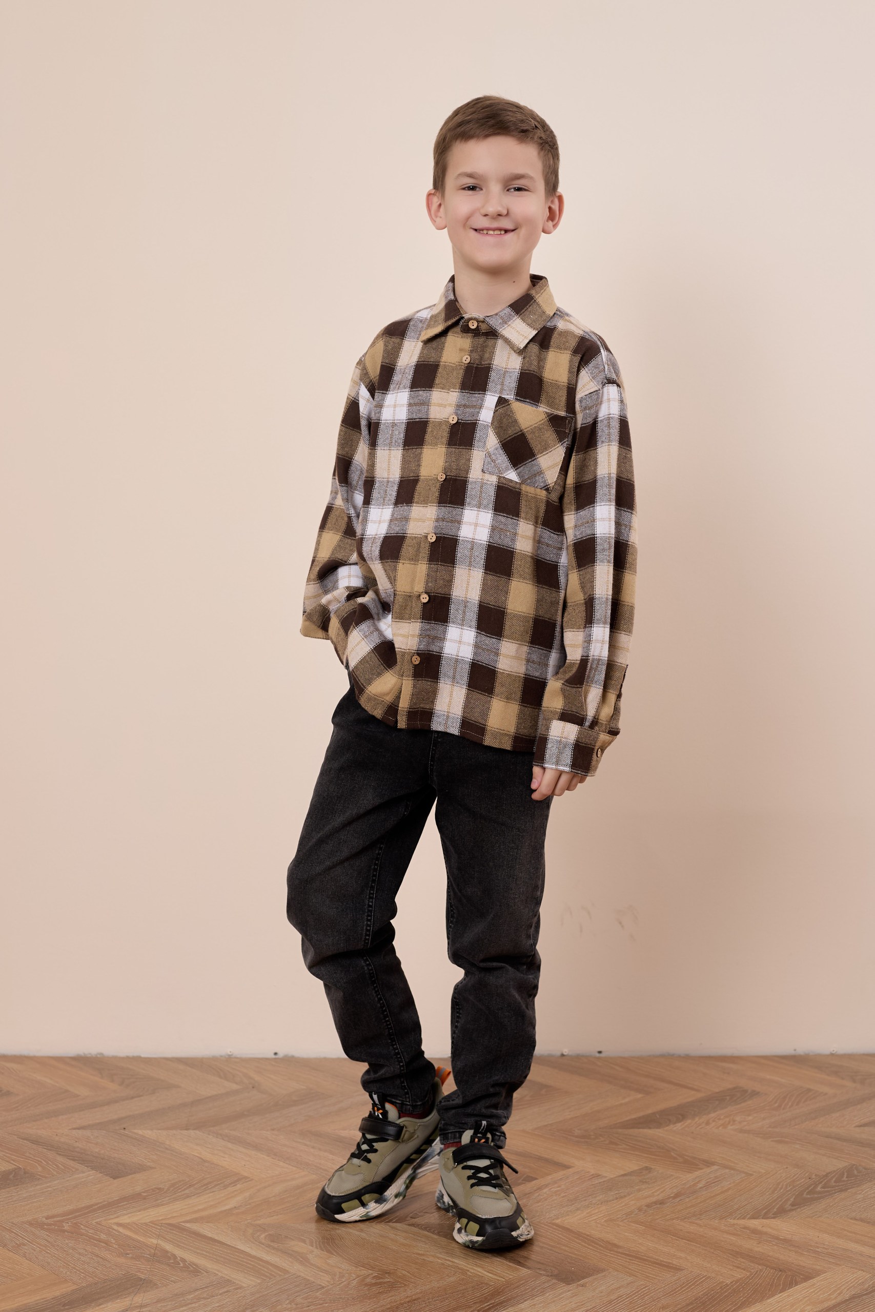 Рубашка с длинным рукавом из материала "рубашечный шерон" и застёжкой на пуговицы — отличный выбор для ребенка. Обеспечивает свободу движений, комфорт и аккуратный внешний вид. Воротник придаёт изделию стильный вид.