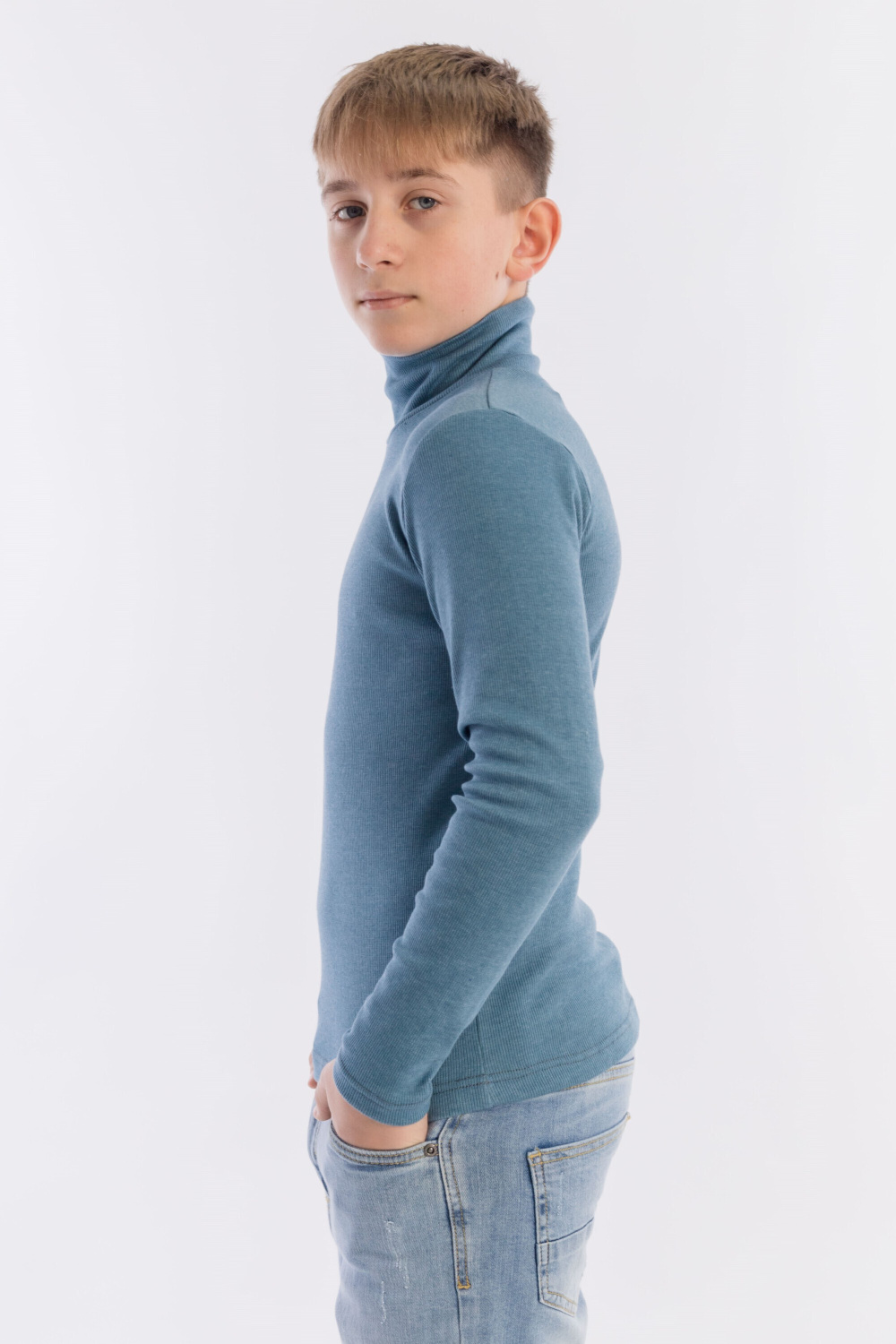 Детская водолазка выполнена из кашкорсе однотонных цветов.