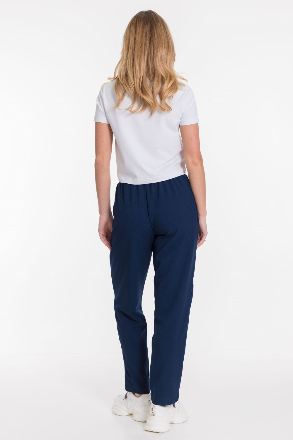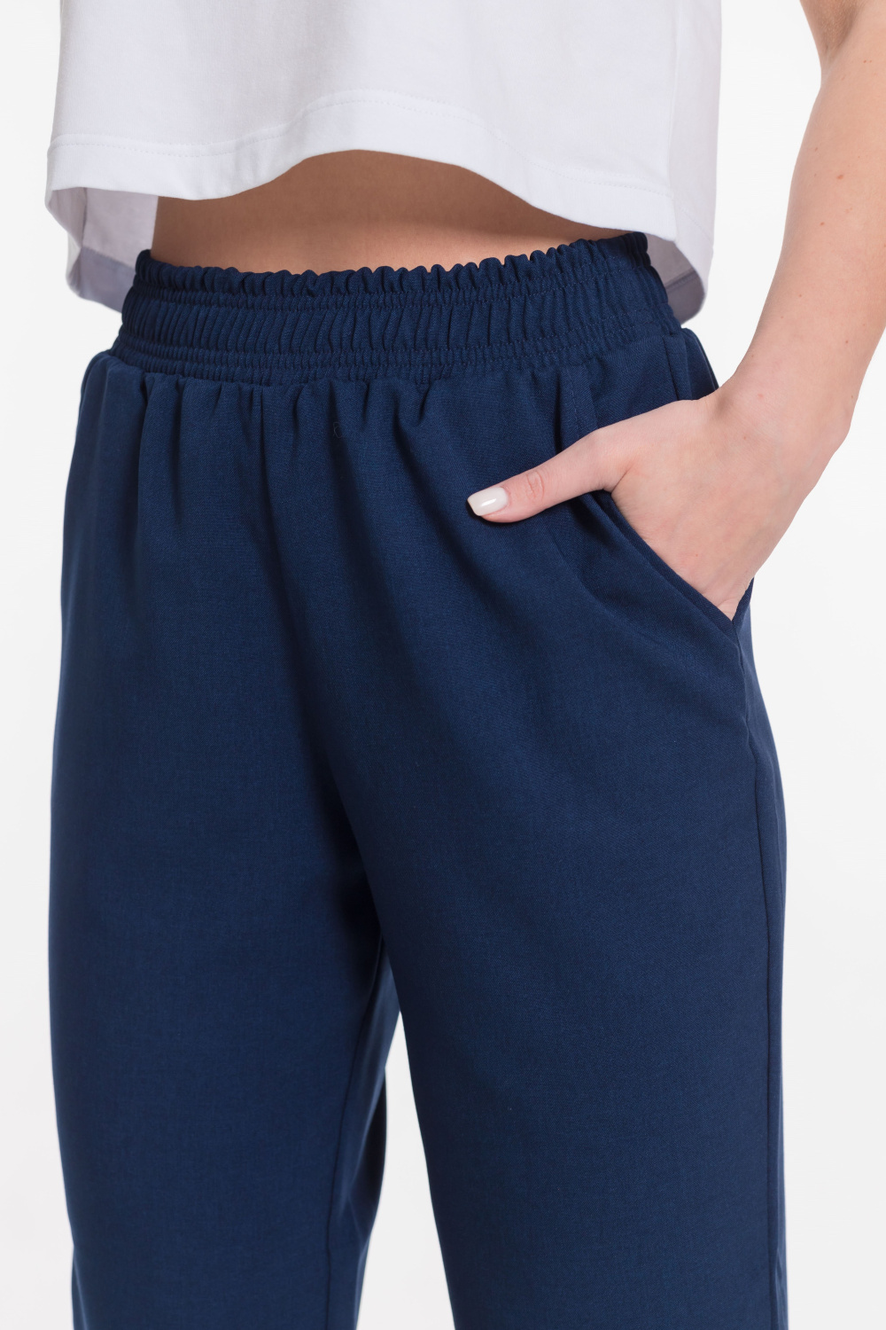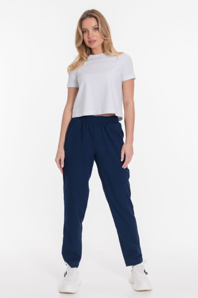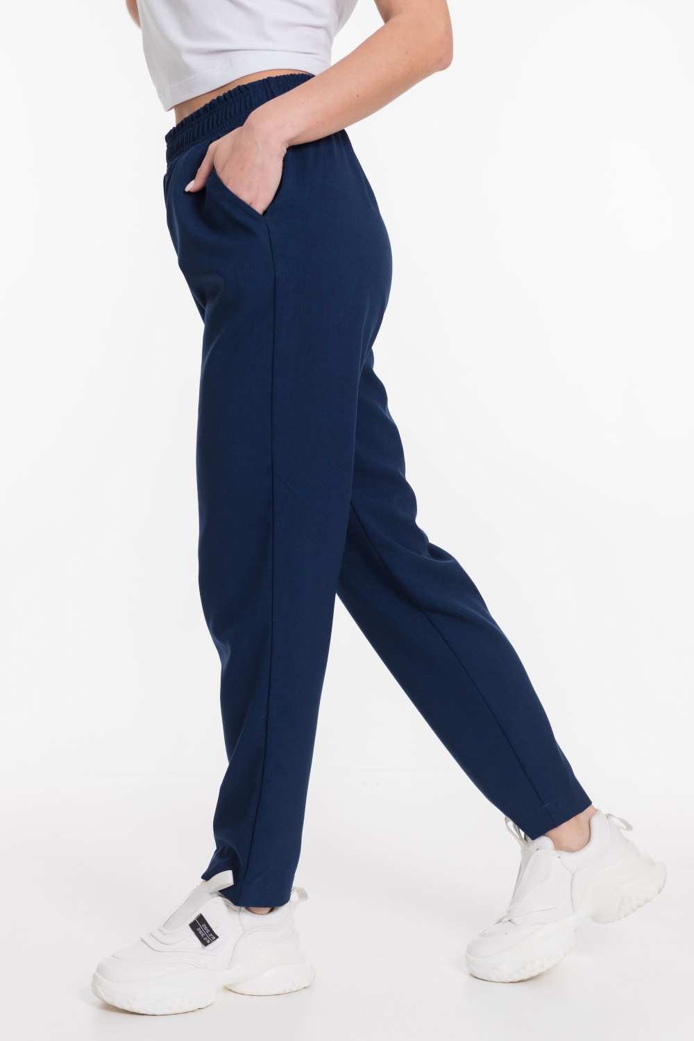 Пояс на резинке, боковые карманы, зауженные внизу.