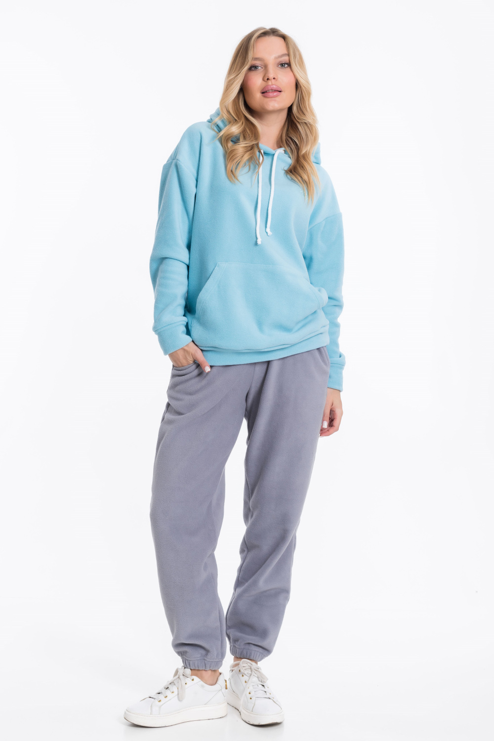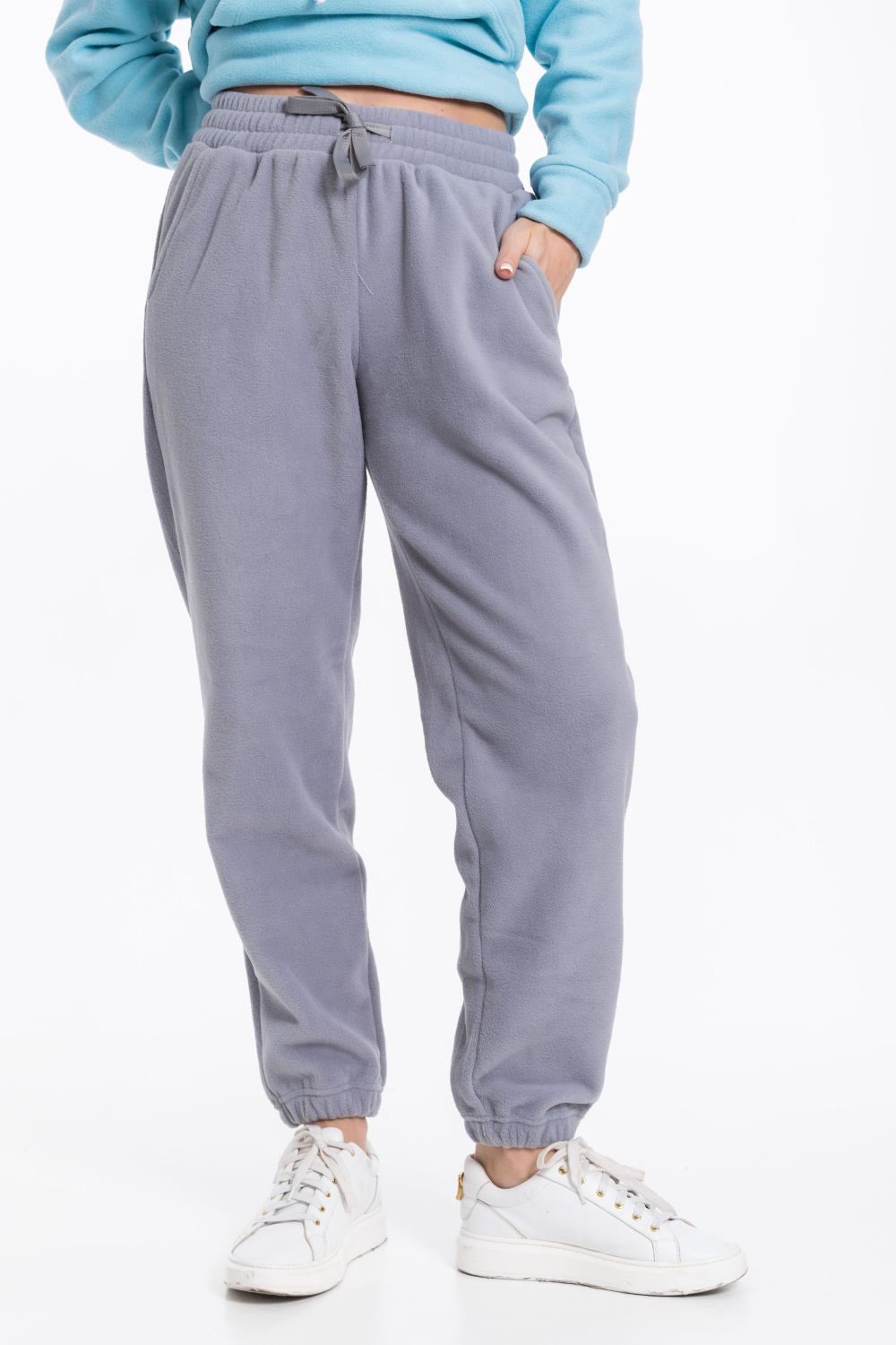 Женские серые брюки из флиса — отличный выбор для повседневной носки. Боковые карманы и пояс на резинке со шнуром обеспечивают комфортную посадку, а низ штанин на резинке хорошо садится по фигуре. Брюки сохраняют тепло и подходят для активного отдыха.
