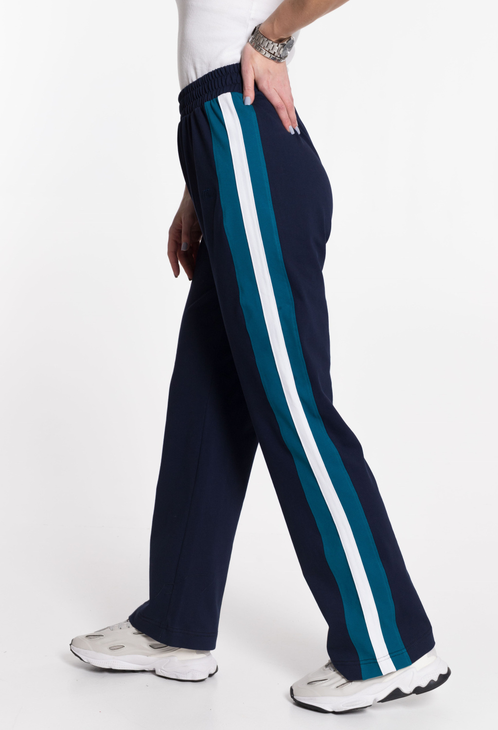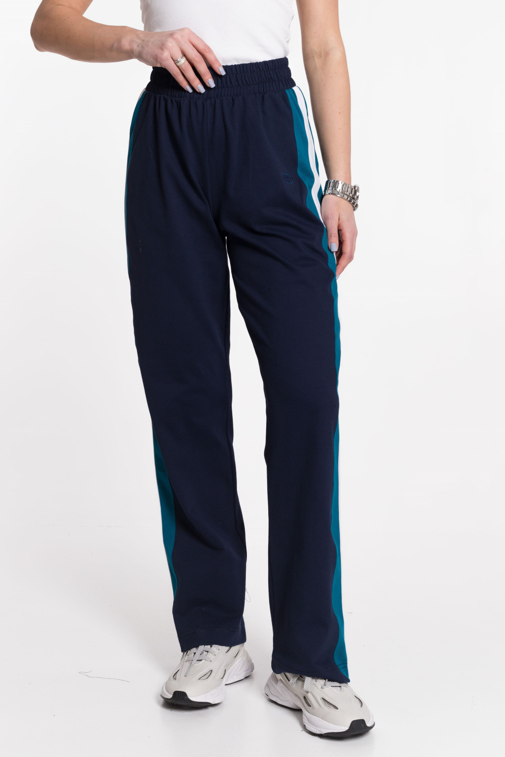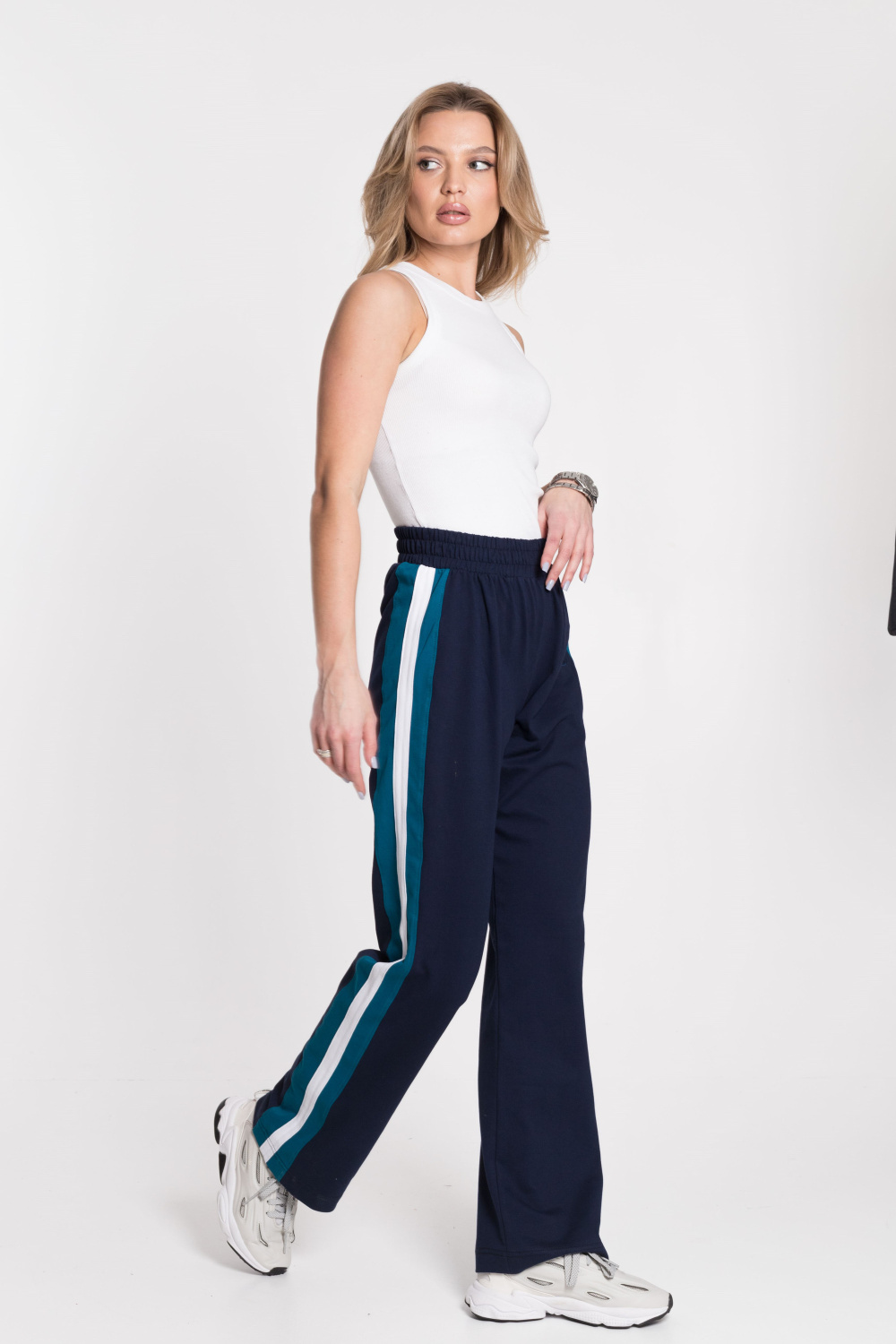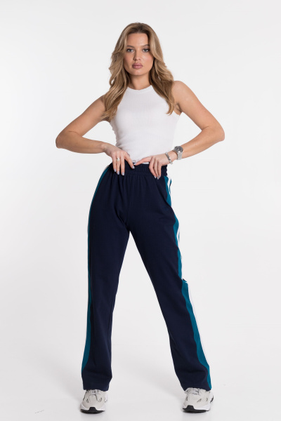 Брюки прямого силуэта с контрастными вставками в боковых швах, пояс на резинке.