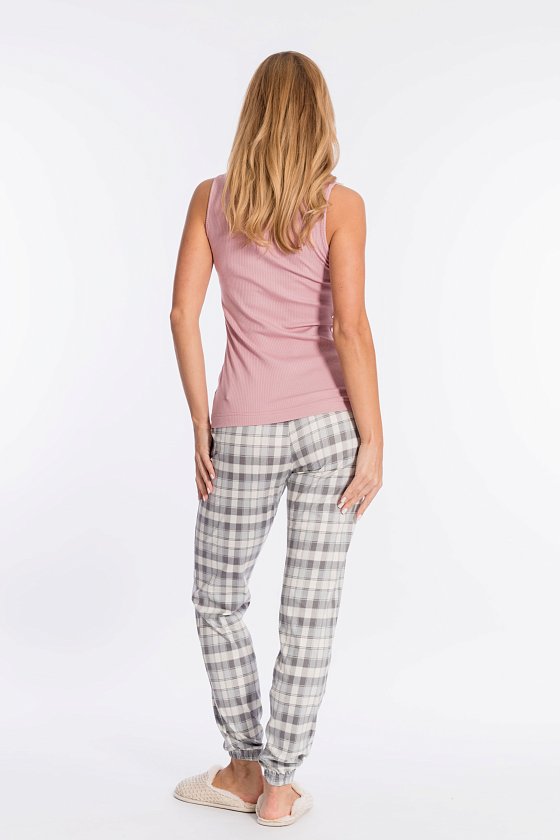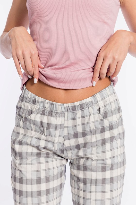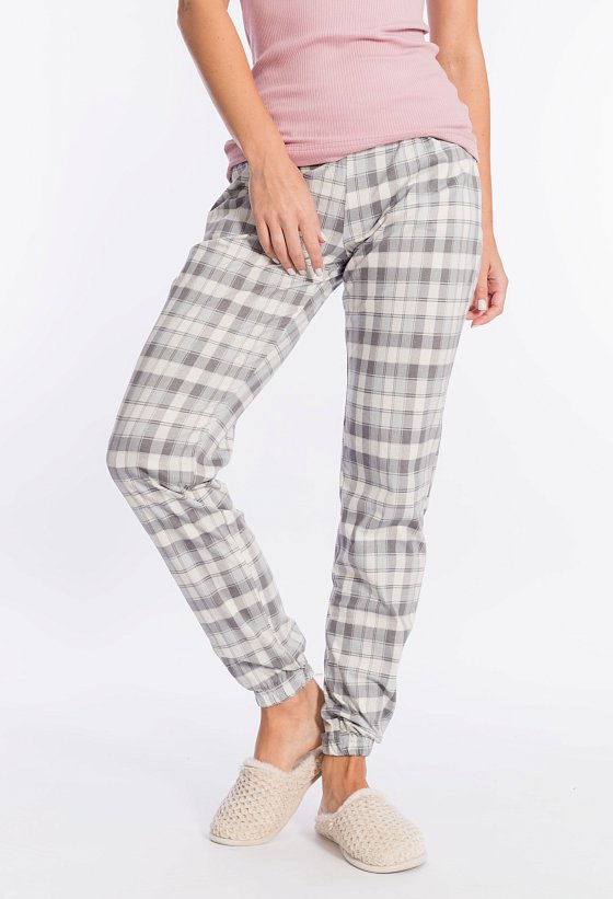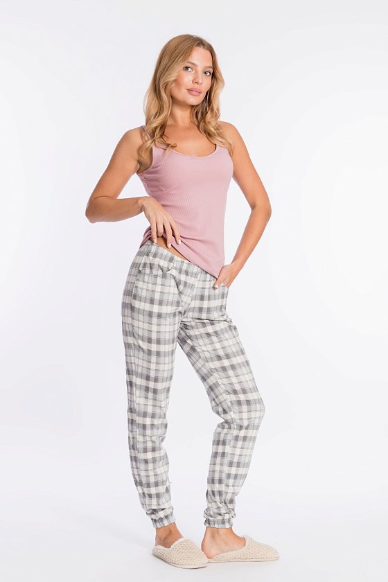 Брюки выполнены из хлопкового полотна. На резинке по поясу и внизу, с боковыми карманами.