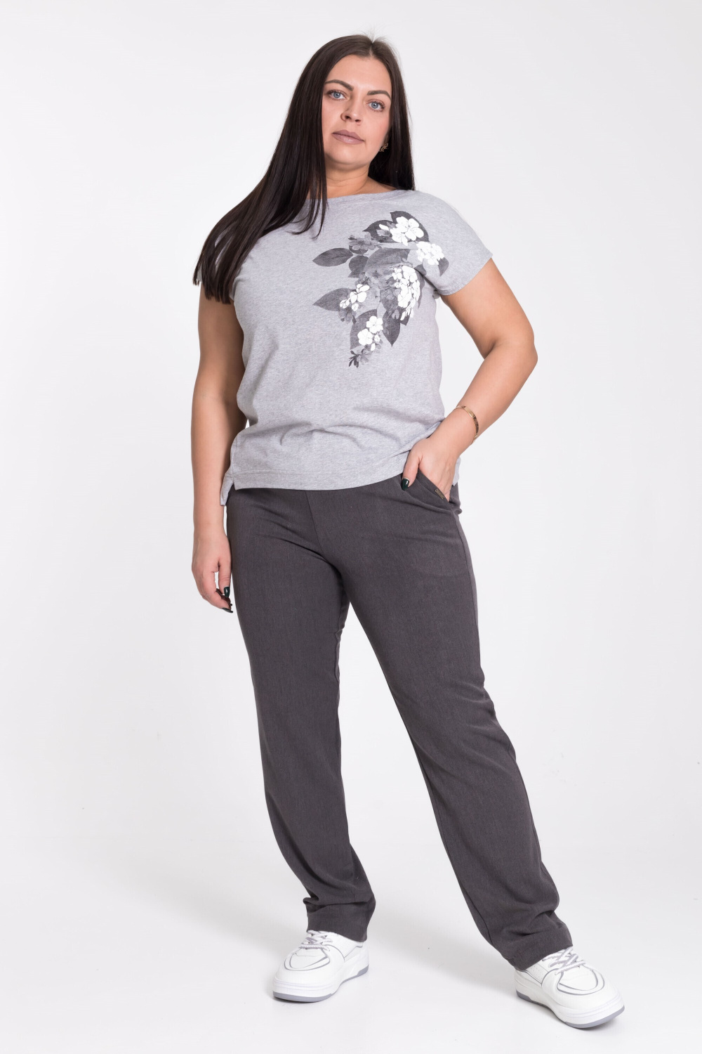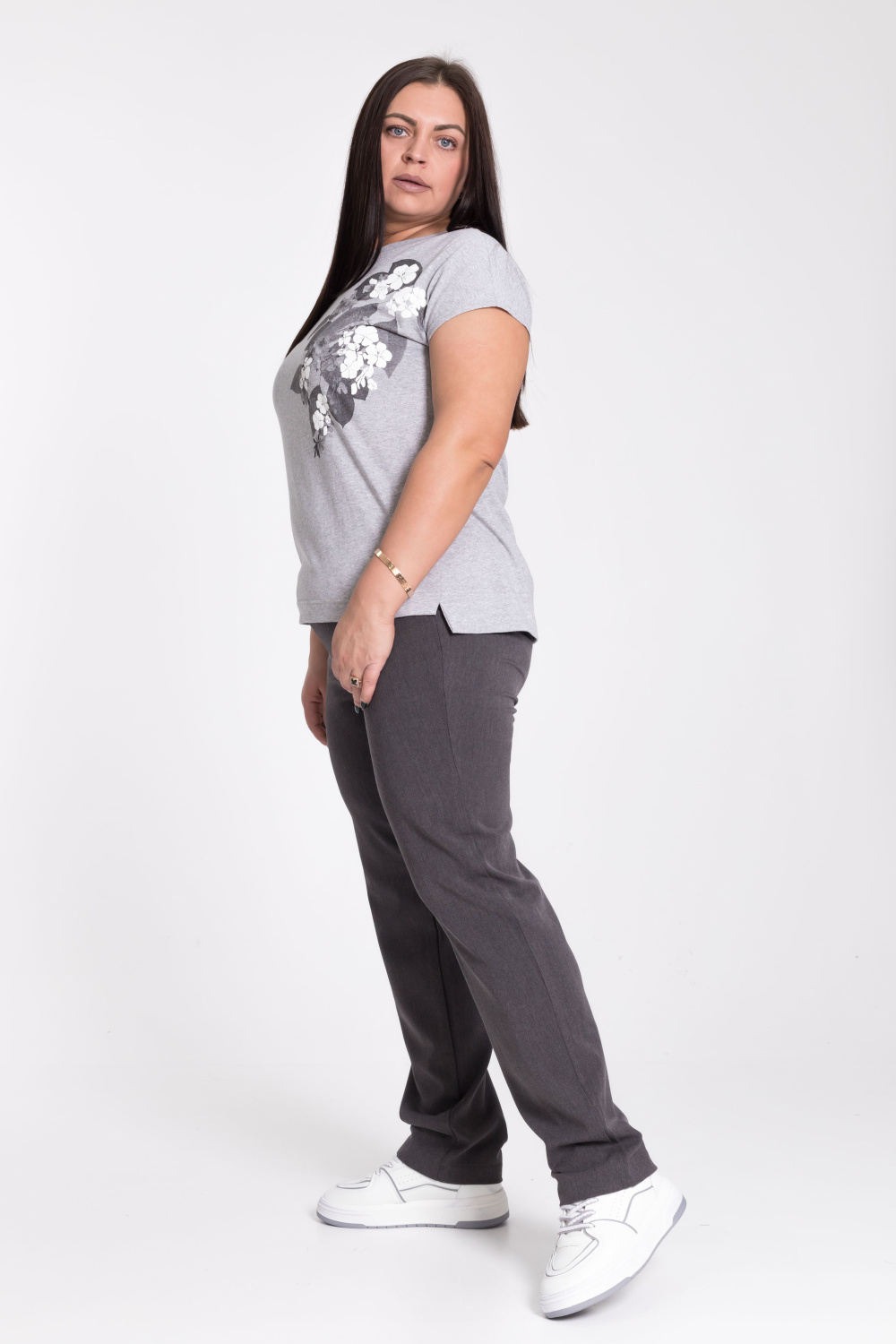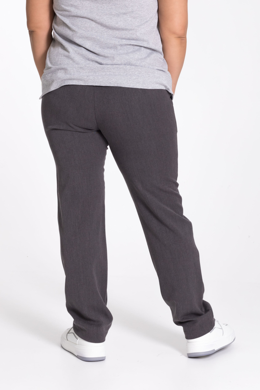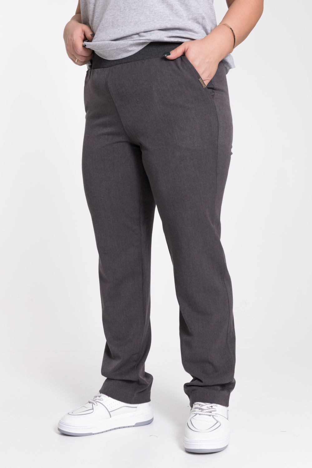 Брюки из костюмного полотна, классической формы. С боковыми карманами и трикотажным поясом на резинке.