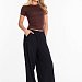 Женские брюки свободного силуэта выполнены из искусственного льна. Спереди настрочены карманы, пояс на резине.